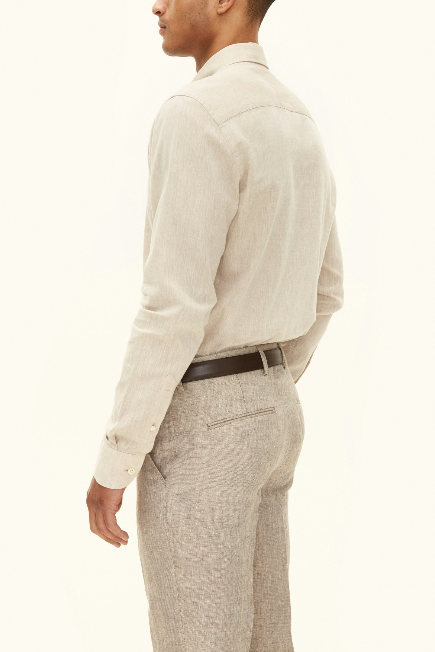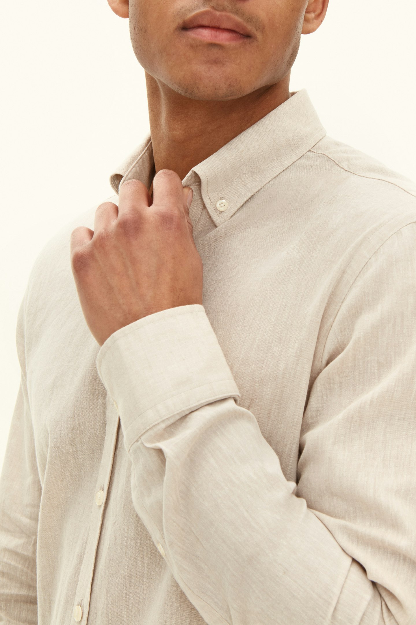 Cotton & linen shirt in slim fit with a casual button down collar and single cuff.