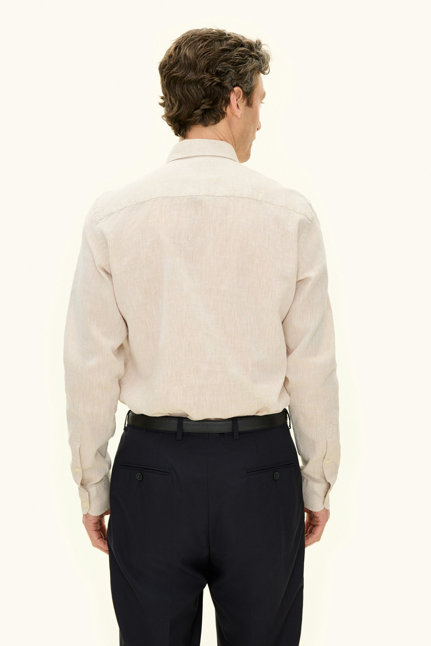 Cotton & linen shirt in slim fit with a casual button down collar and single cuff.