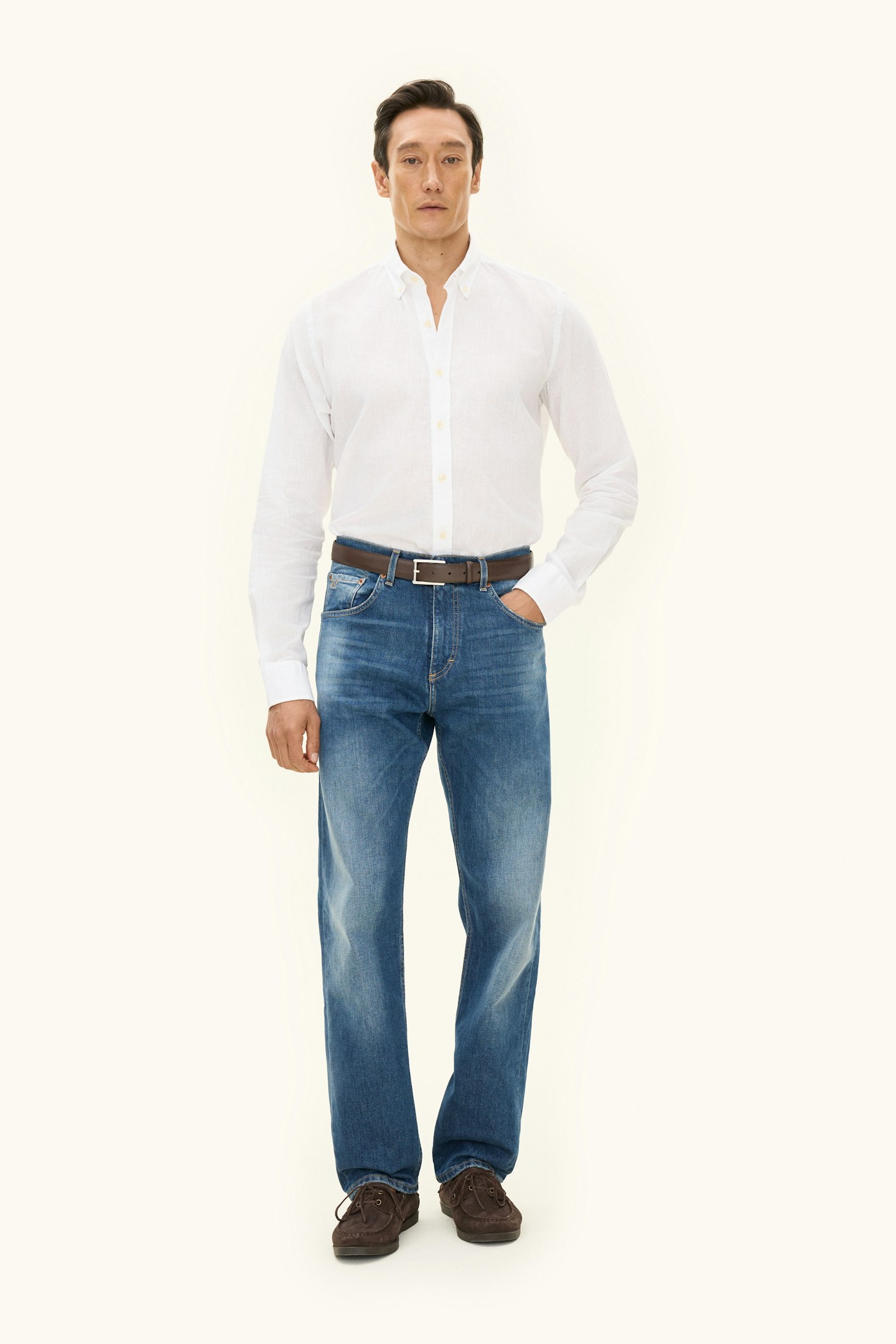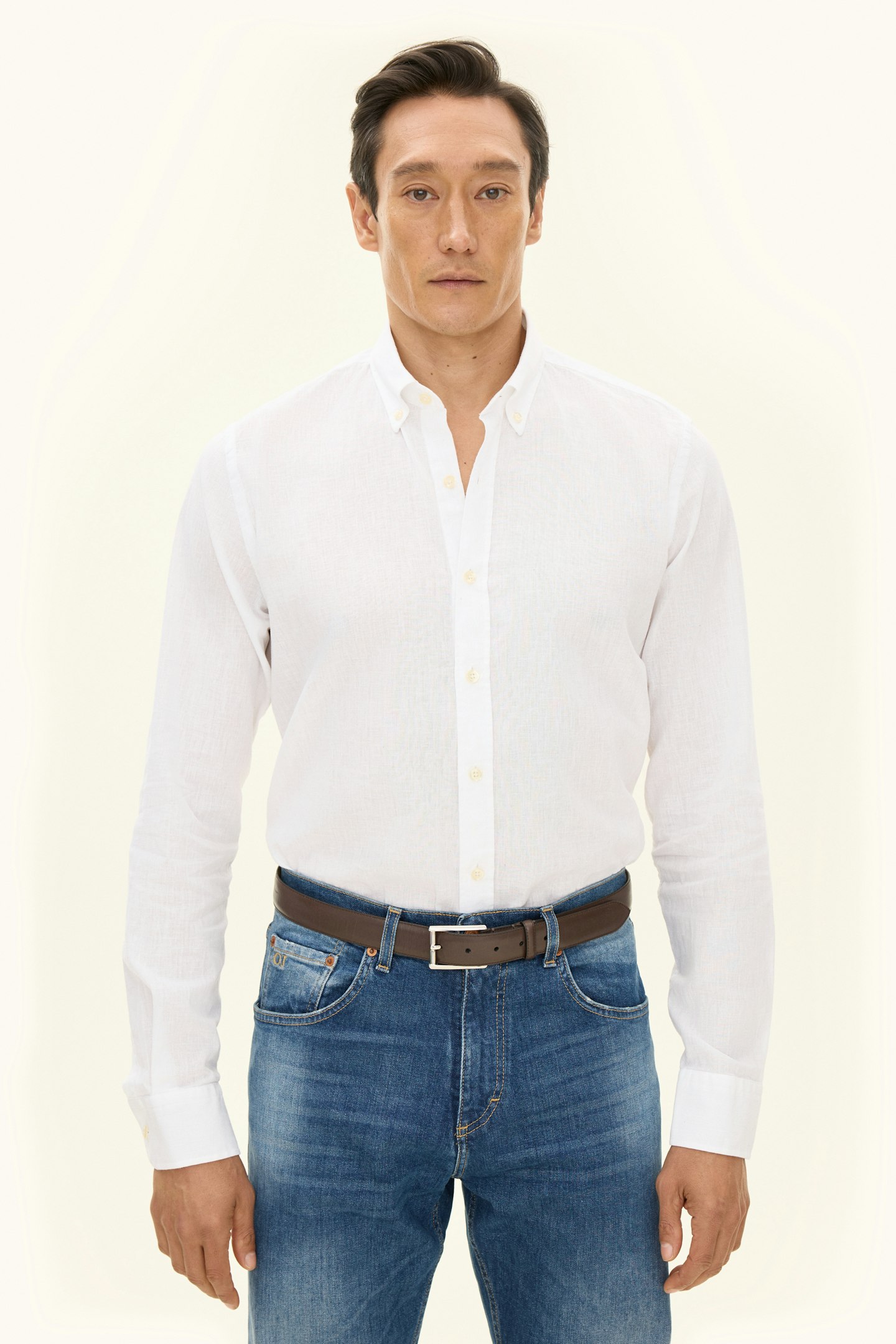 Cotton & linen shirt in slim fit with a casual button down collar and single cuff.