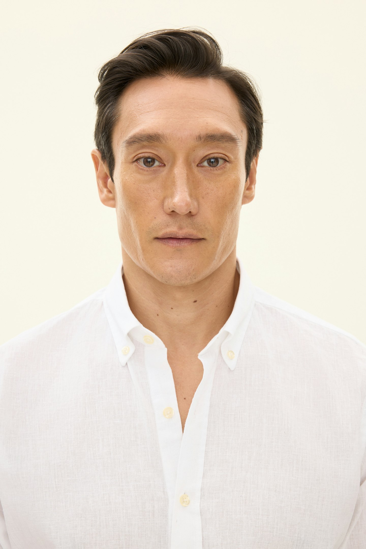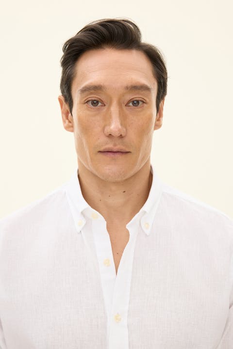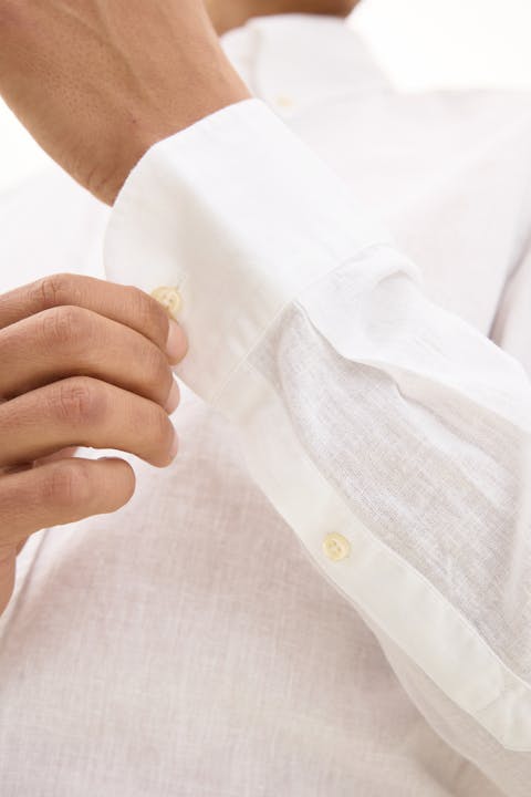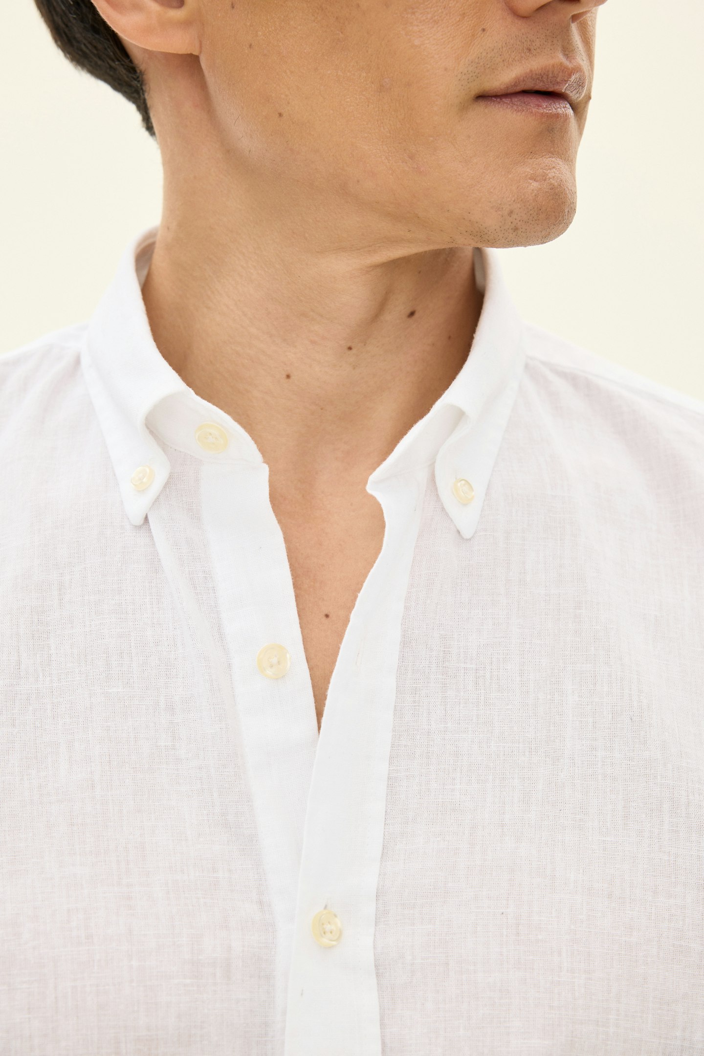 Cotton & linen shirt in slim fit with a casual button down collar and single cuff.