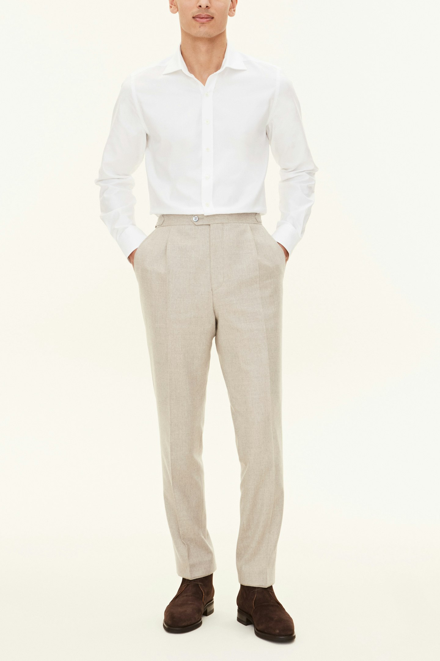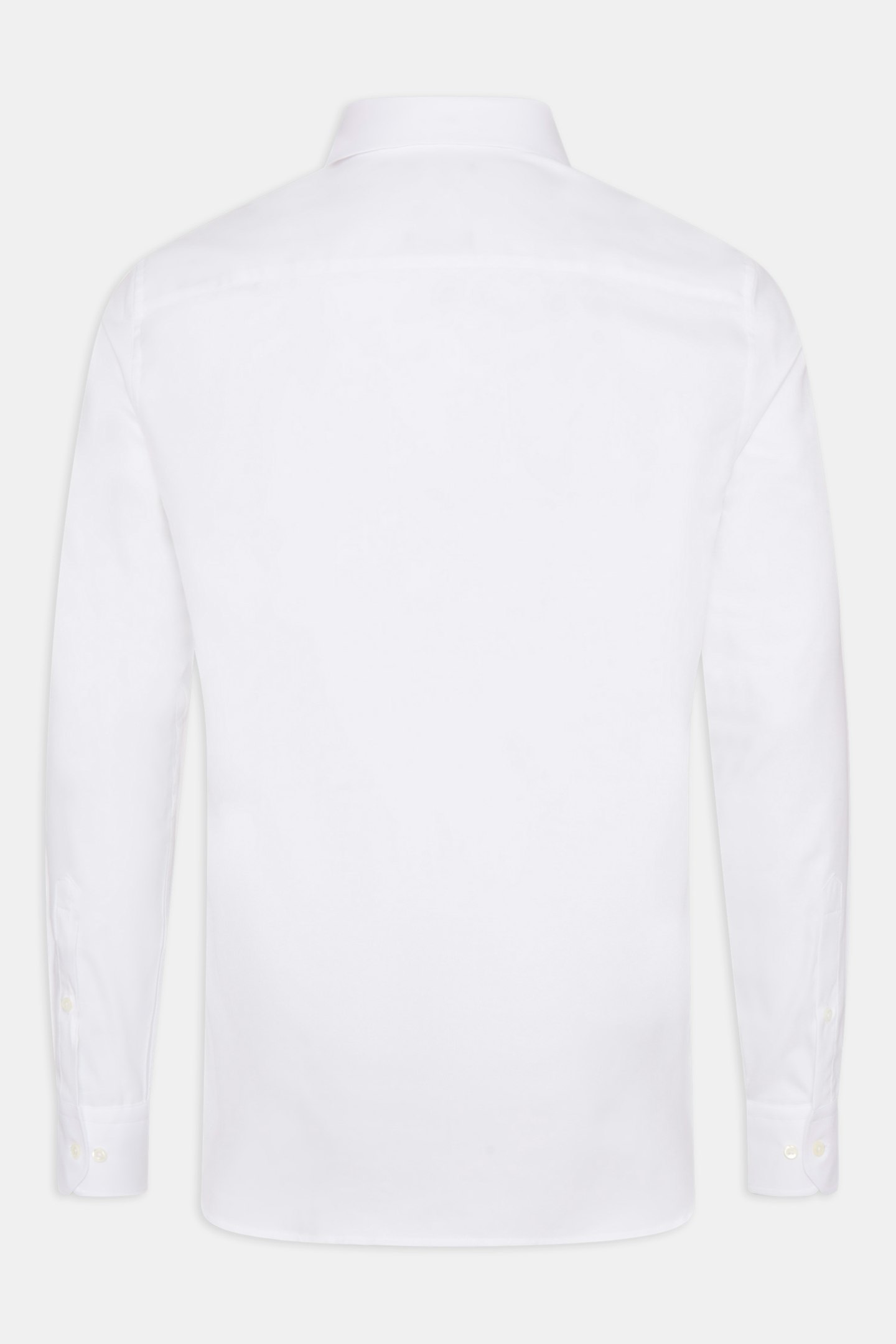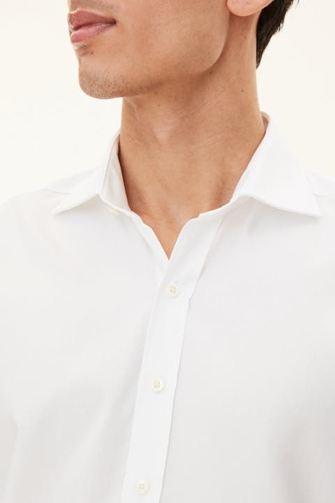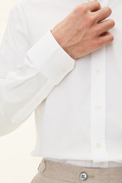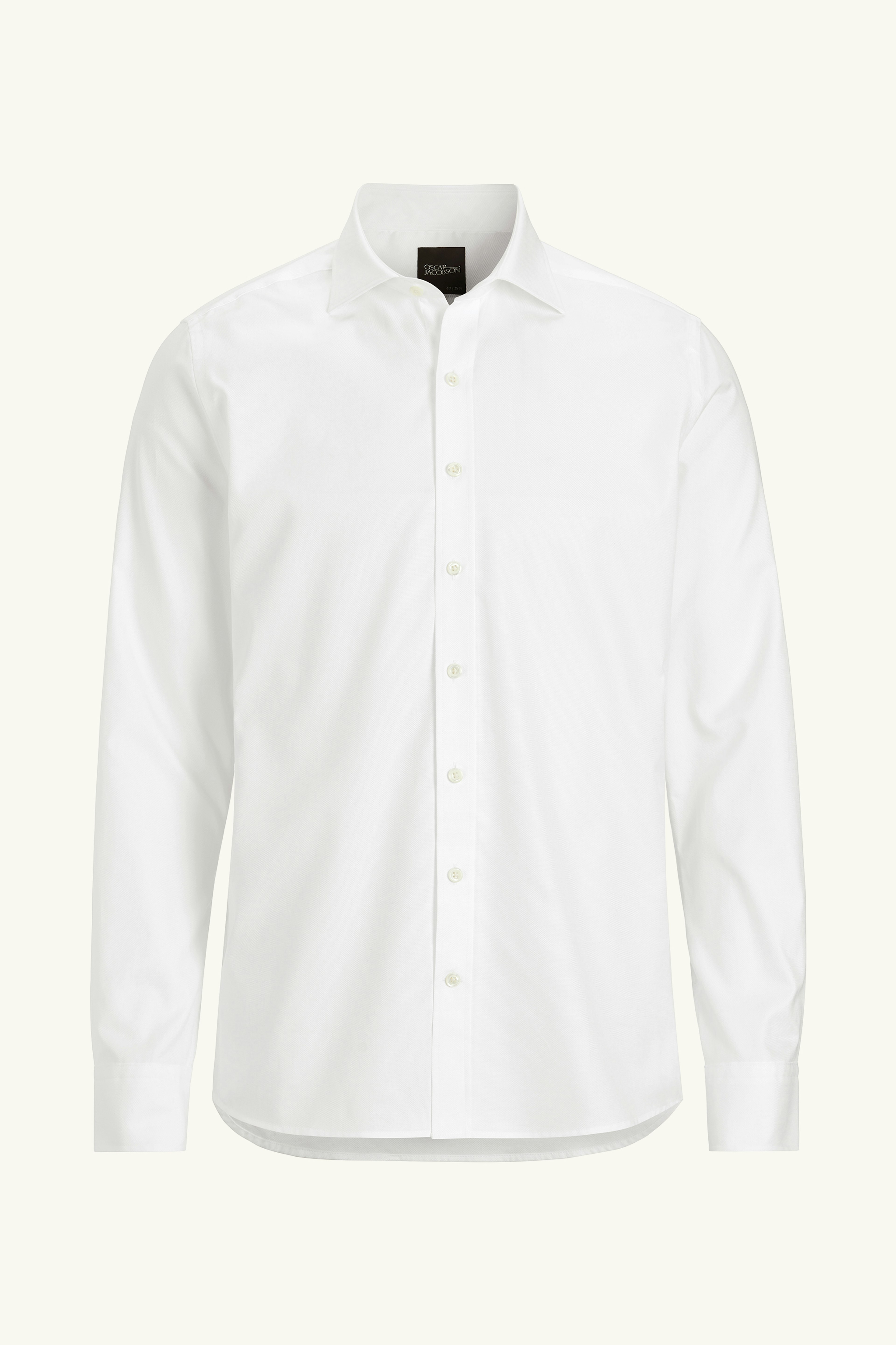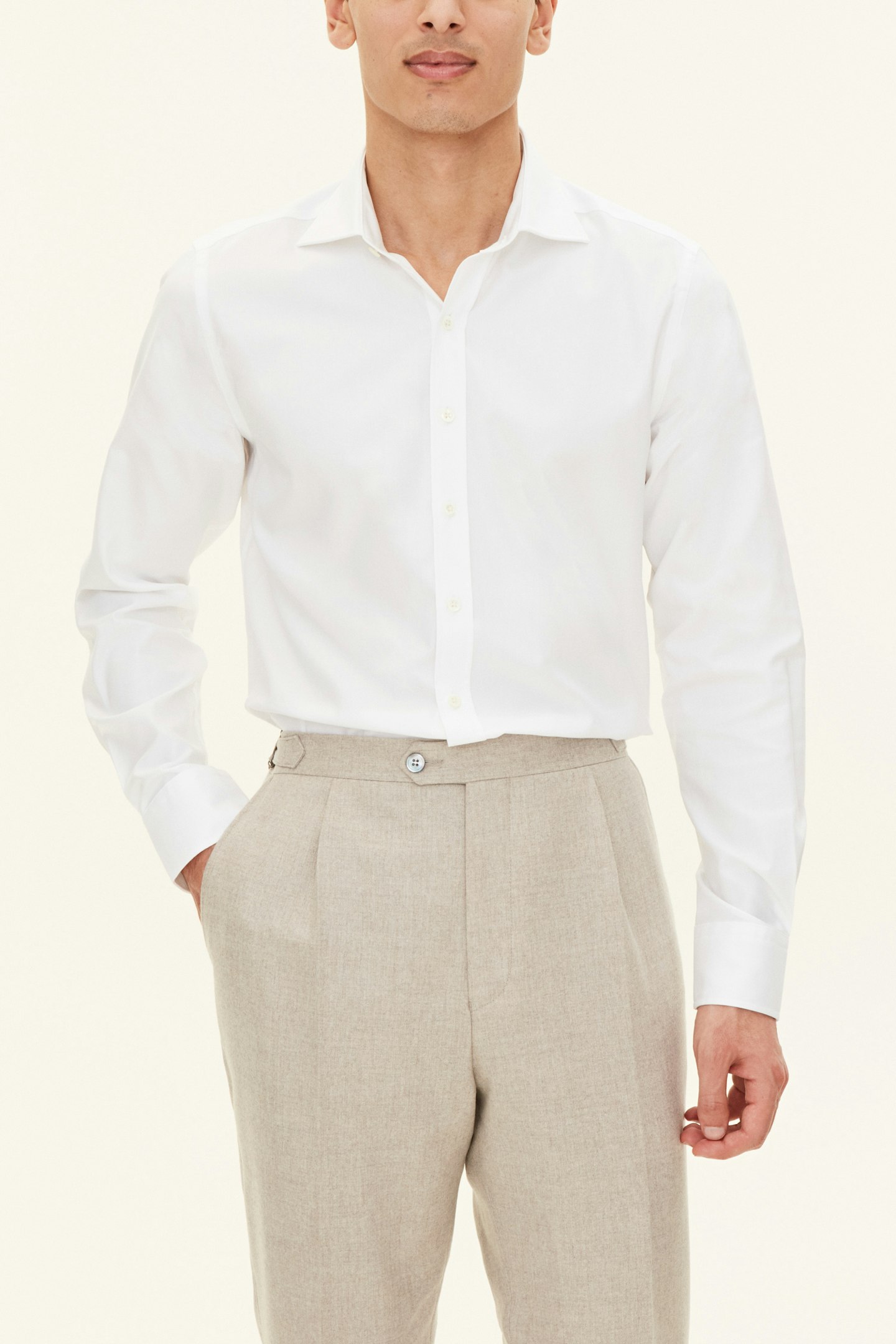 Business-skjorte i slim fit med enkel mansjett laget i en luksuriøs og tidløs Royal Oxford- signert Thomas Manson. Den elegante semi cut away-kragen ser flott ut både med og uten slips.