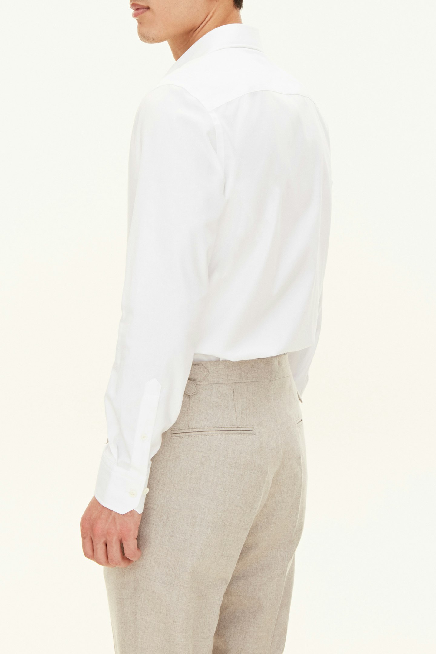 Business-skjorte i slim fit med enkel mansjett laget i en luksuriøs og tidløs Royal Oxford- signert Thomas Manson. Den elegante semi cut away-kragen ser flott ut både med og uten slips.