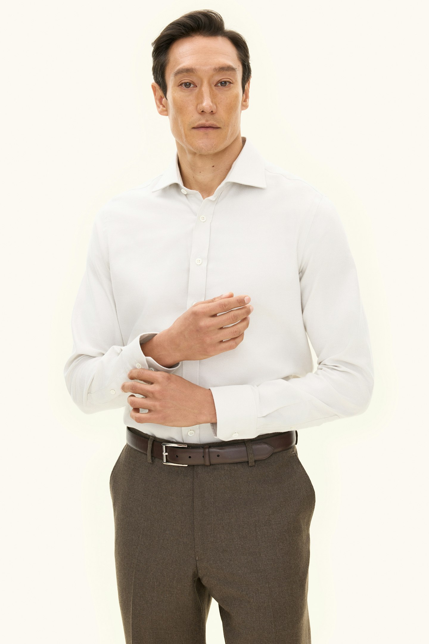 En slim fit skjorte i 100 % bomull med cut away-krage og enkel mansjett. Et allsidig tilskudd til den stilbevisste garderoben.