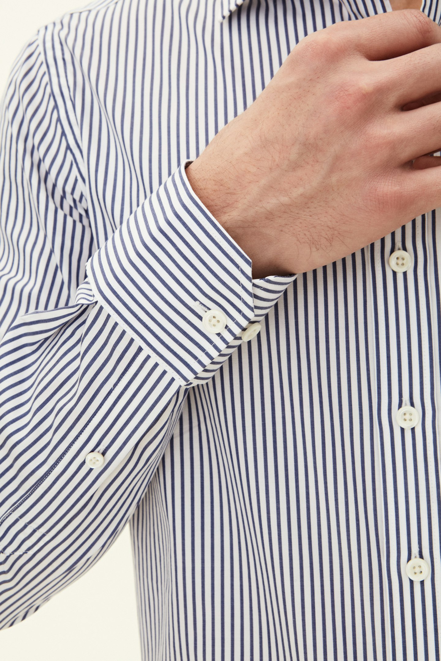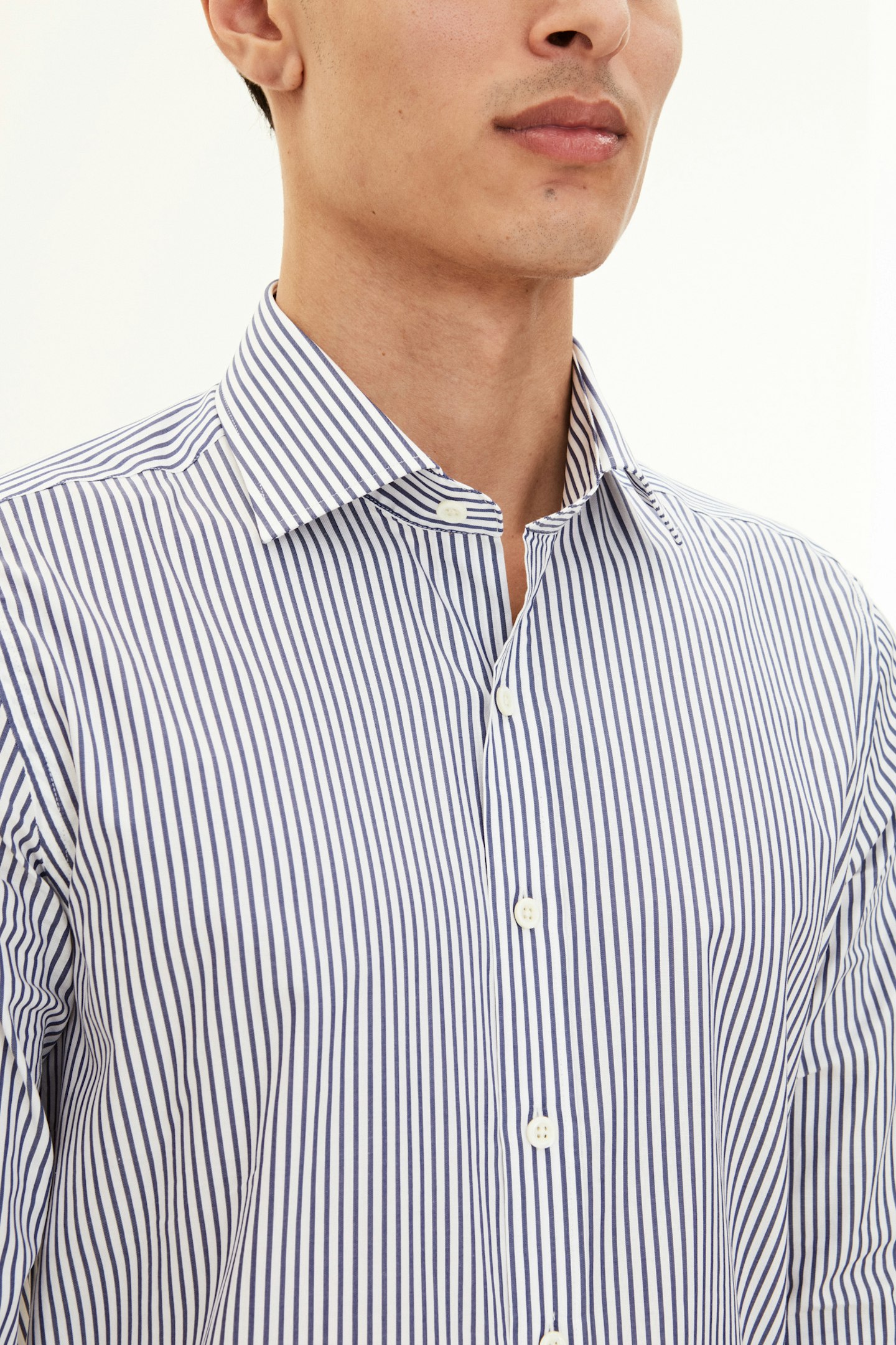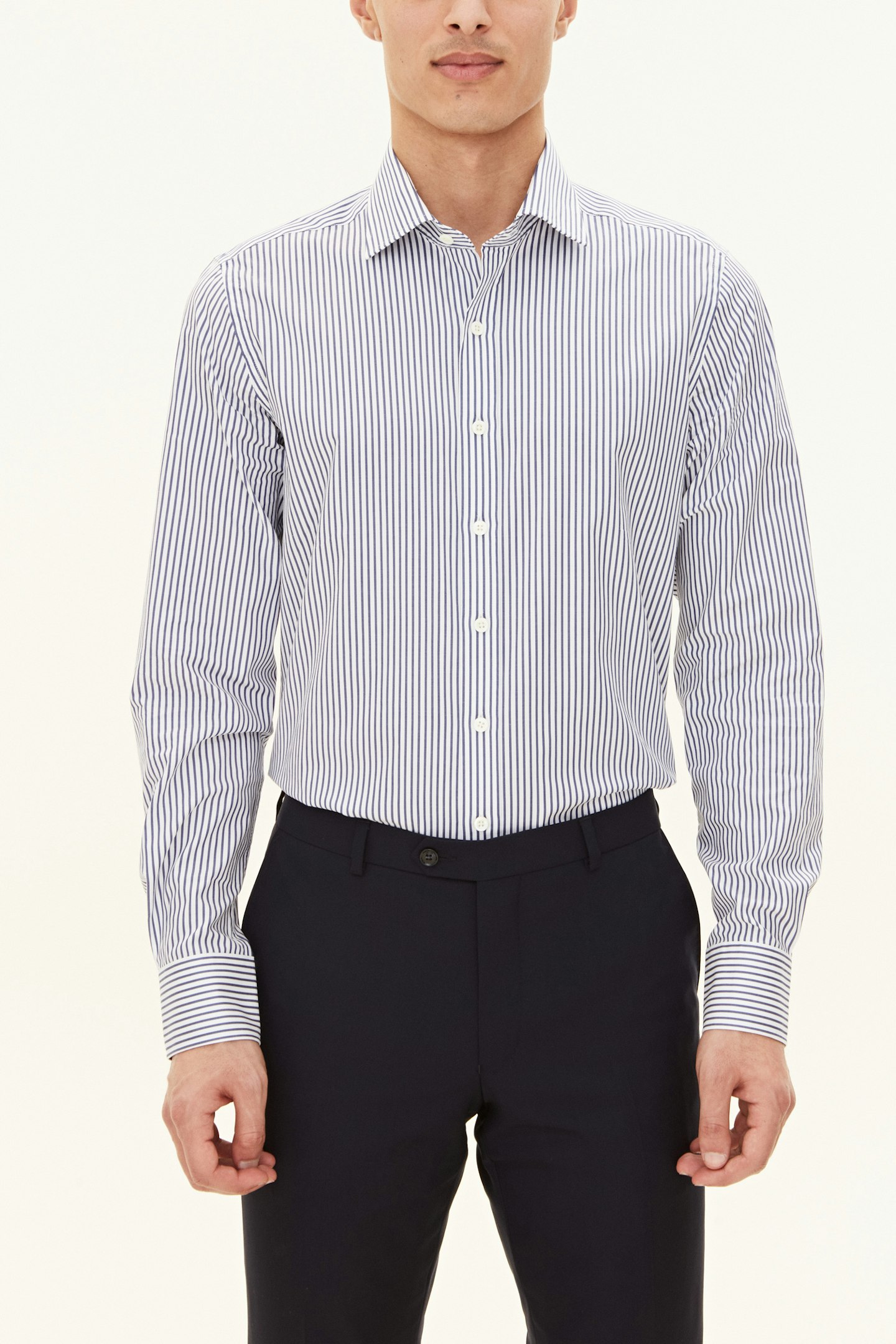 Slim fit shirt with cut away collar and single cuff. Made of 100% cotton poplin with stripes. Perfect for a professional look.