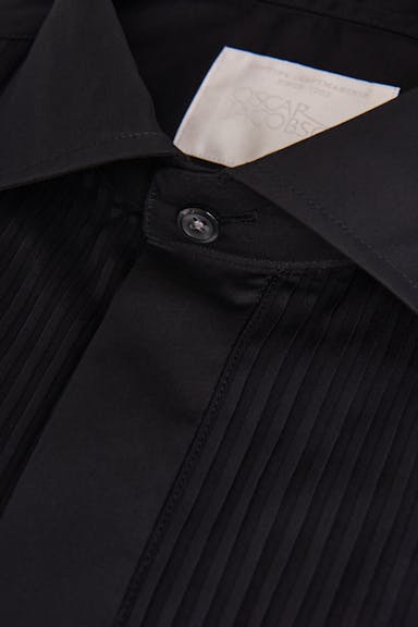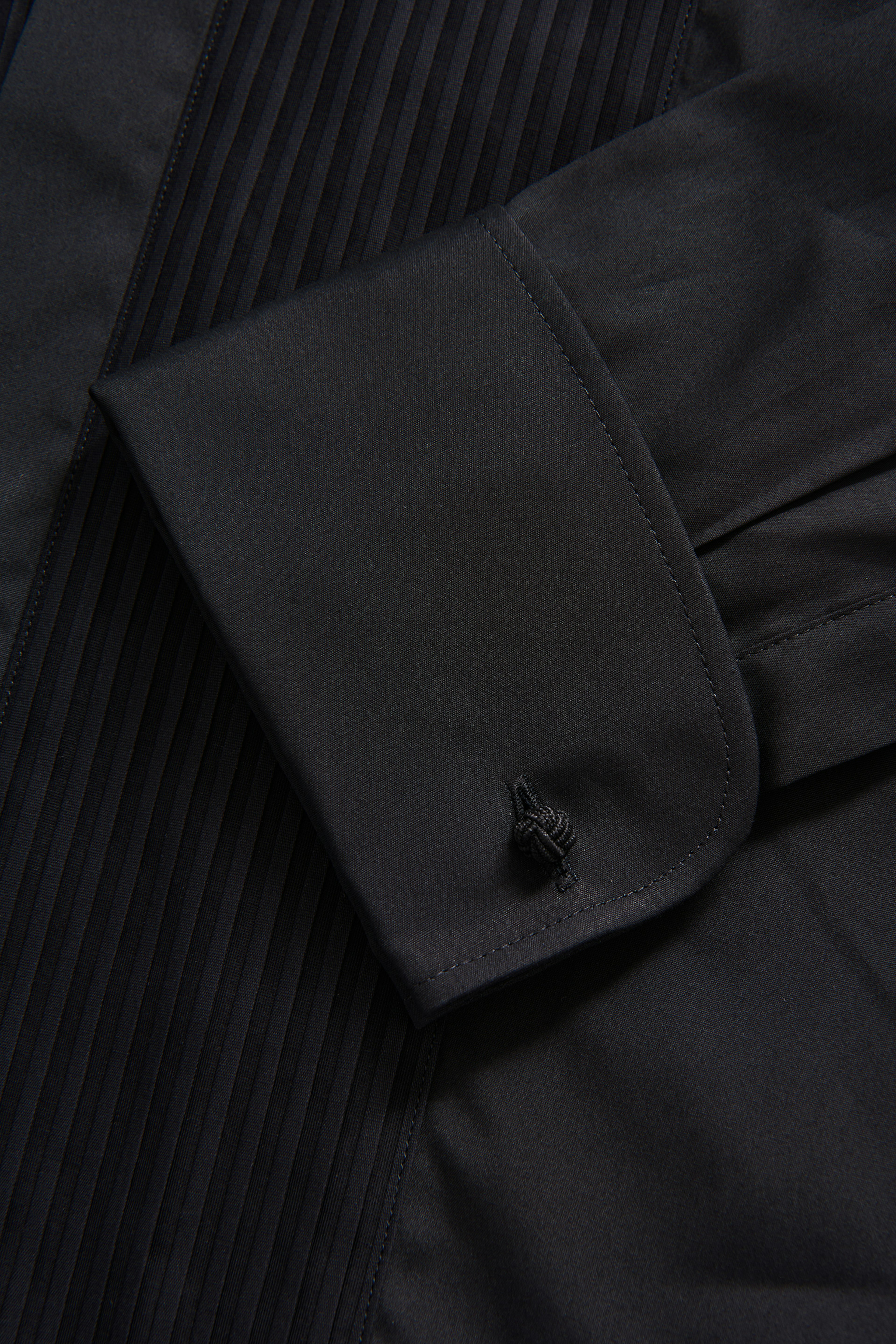 Hyde smokingskjorte med plissert bryst og dobbel mansjett. Smal passform Semi cut away-krage Dobbeltvinnet bomull