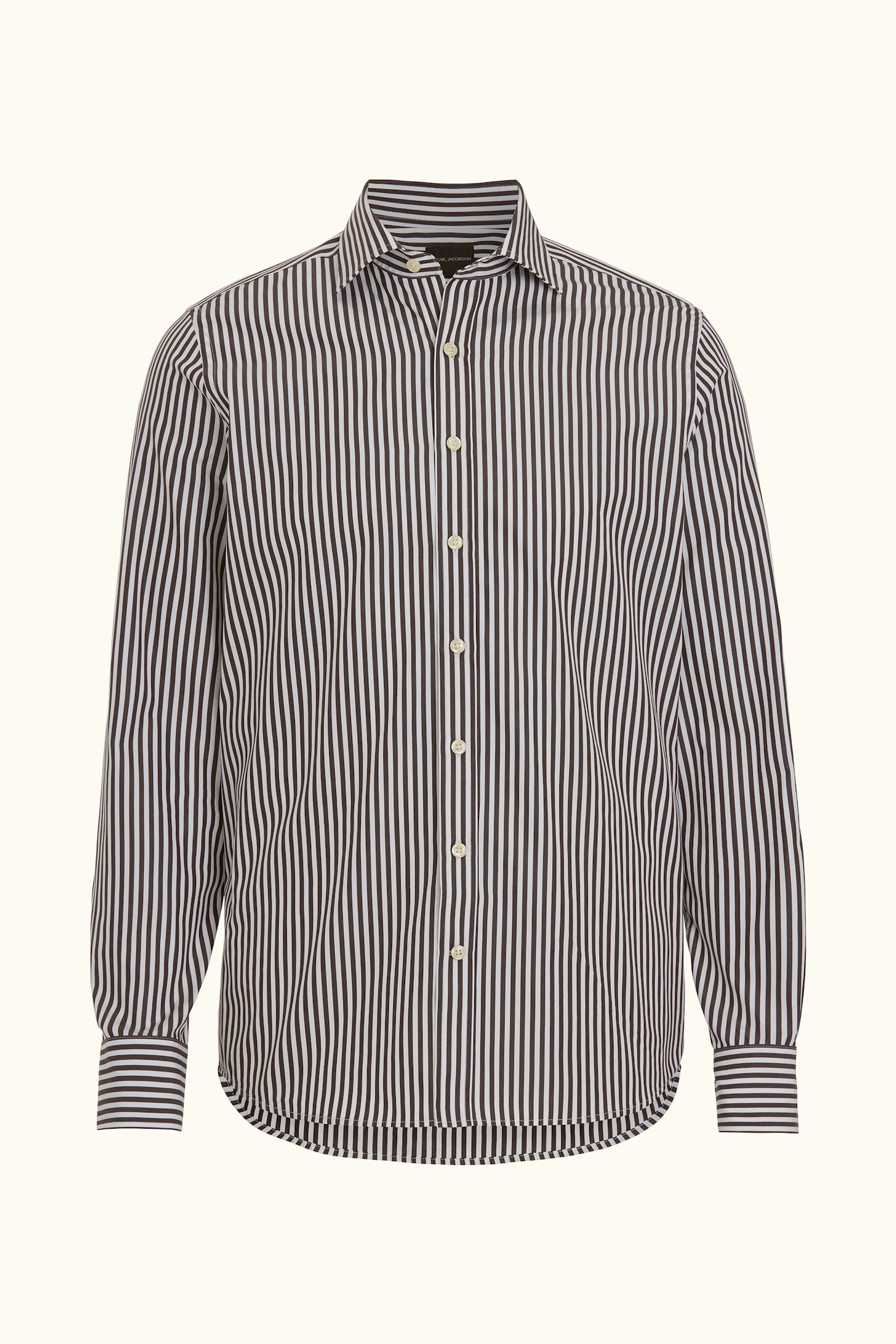 Slim fit skjorte i 100 % bomull med klassisk stripemønster. Den vevde panamastrukturen gir stoffet en subtil tekstur, mens den avskårne kragen og den enkle mansjetten skaper et stilig og allsidig utseende. Like elegant under en jakke som med et par uformelle bukser.