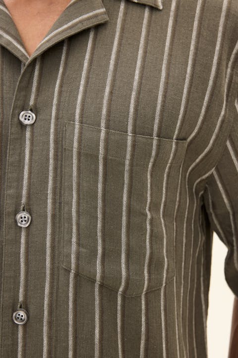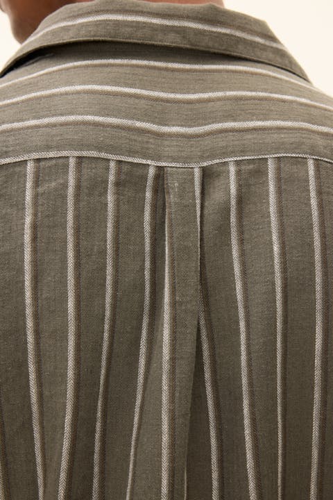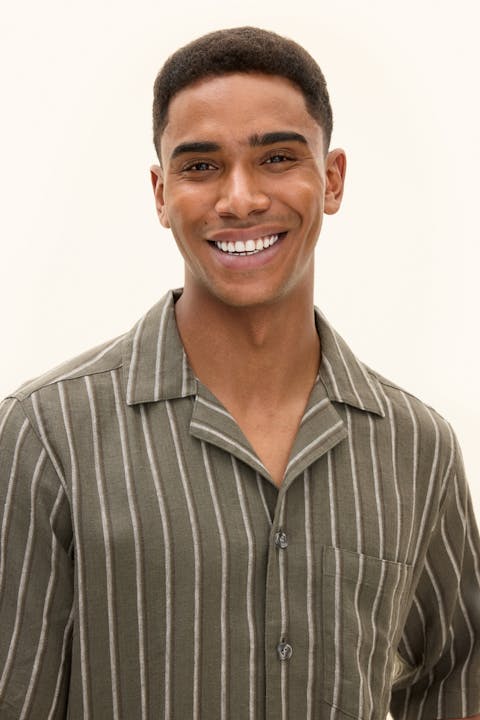 Slim fit skjorte i 100 % lin med et tidløst stripete mønster. Sløyfekragen og den luftige linkvaliteten gjør den til det perfekte valget for varmere dager - avslappet, men likevel velkledd.