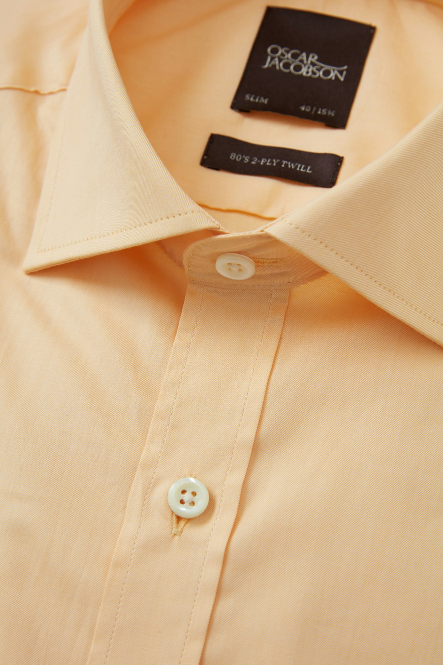 Vår slim fit cut away light twill skjorte er et stilig valg for enhver anledning. Laget av 100% bomull og tilbyr en behagelig og pustende passform. Cut away-kragen legger til et snev av sofistikasjon til dette moderne designet.