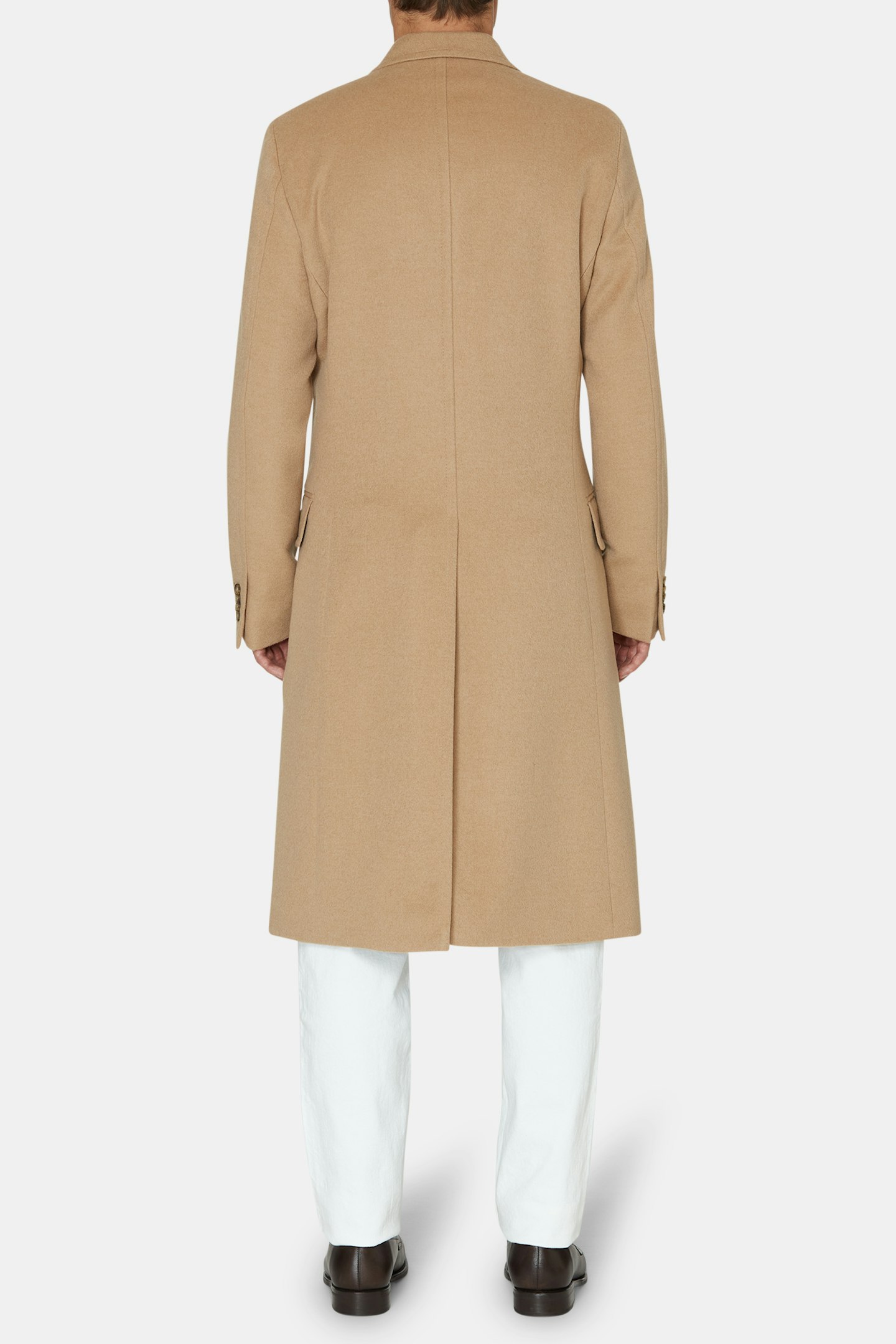 Dobbeltspent Frakke i 100% kamelhår utviklet i samarbeid med Gentlemanualen. Klassisk kåpemodell med spisse slag som passer like godt over en smoking eller mørk dress som over en grovstrikket pologenser og et par hvite jeans. Kamelhåret på kåpen gir en følelse og egenskaper som ligner på kasjmir, men med litt mer tetthet. Produsert av vår italienske leverandør Loro Piana.
