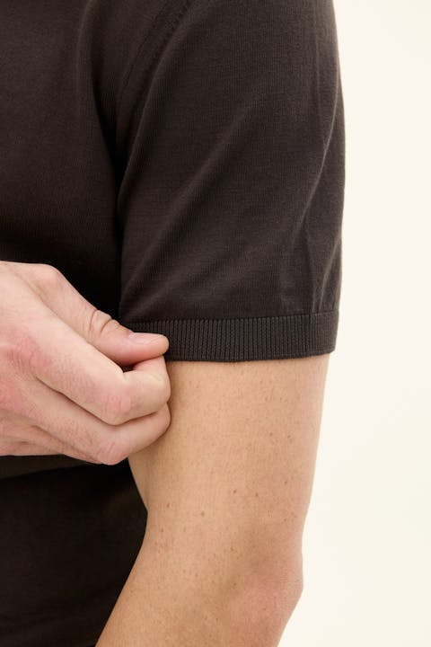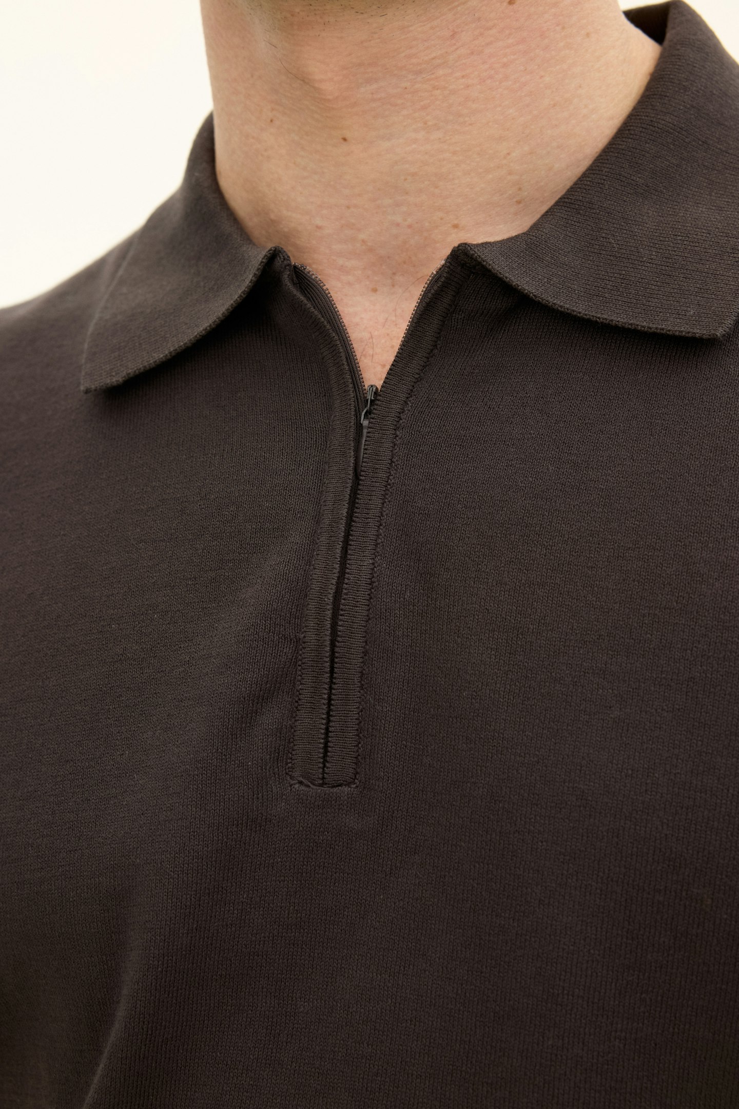 Kortermet genser med krage, laget av finstrikket økologisk bomull. Utstyrt med elegant glidelås i kragen.