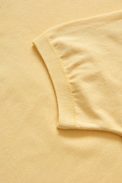 Kortermet genser med krage, laget av finstrikket økologisk bomull. Utstyrt med elegant glidelås i kragen.
