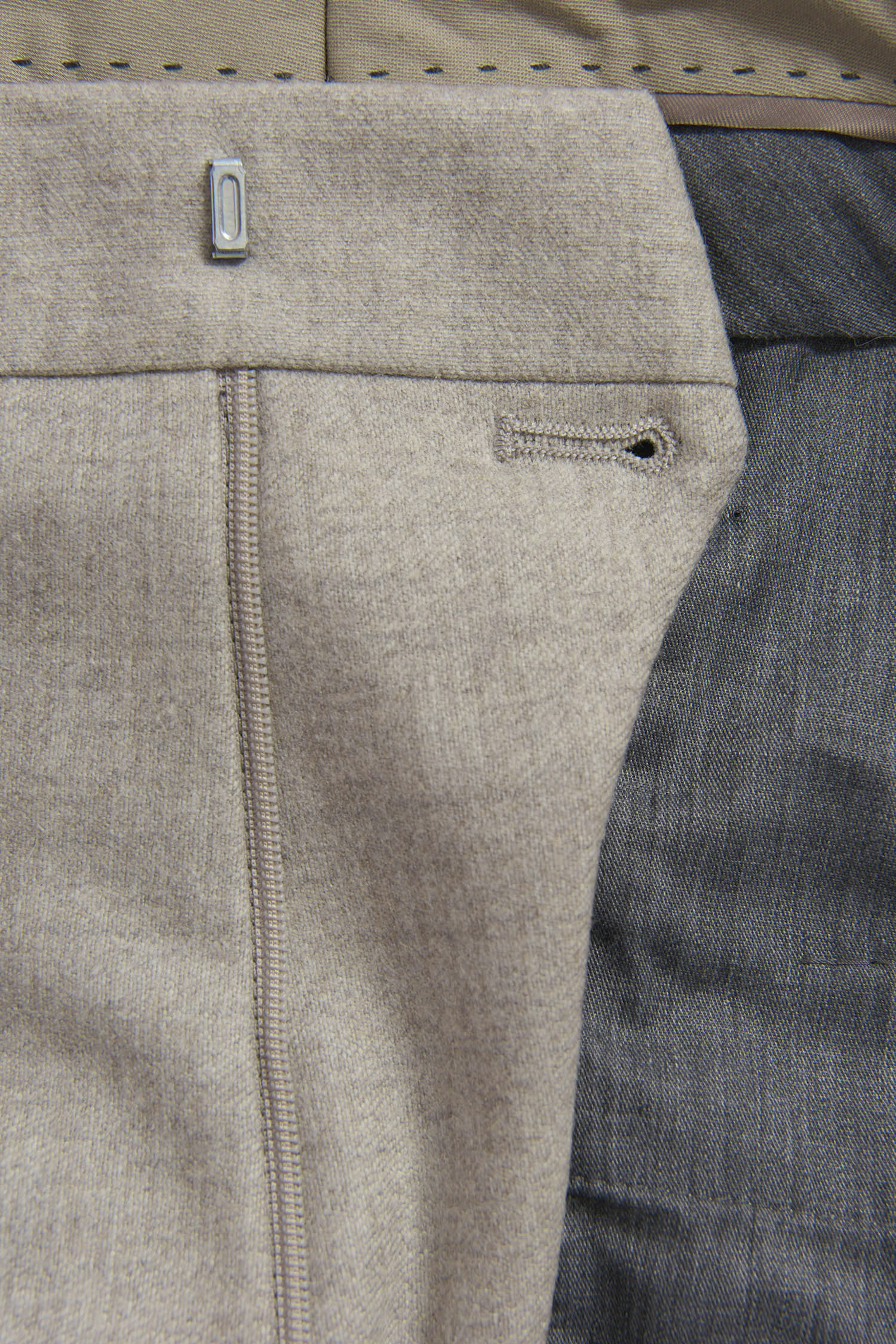 Dressbukser med smal passform, oppbrett og normalt høyt liv. Italiensk flanell av ull som gir en naturlig varme og høy pusteevne.