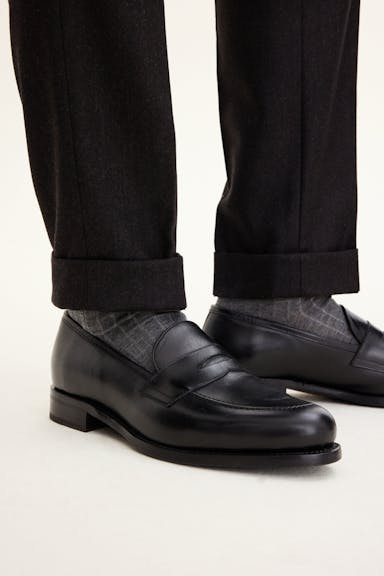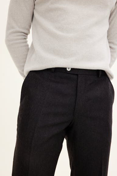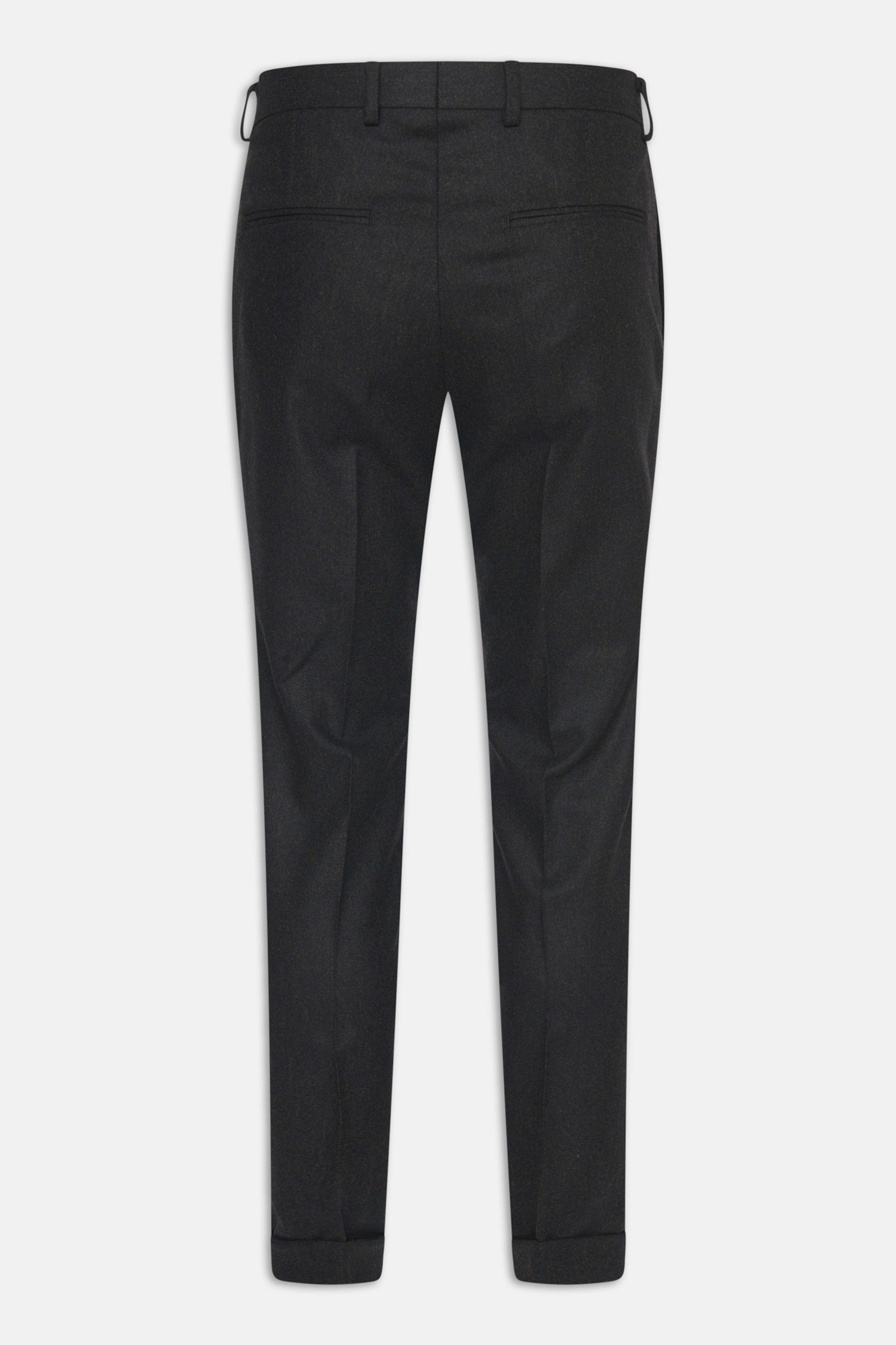 Dressbukser med smal passform, oppbrett og normalt høyt liv. Italiensk flanell av ull som gir en naturlig varme og høy pusteevne.