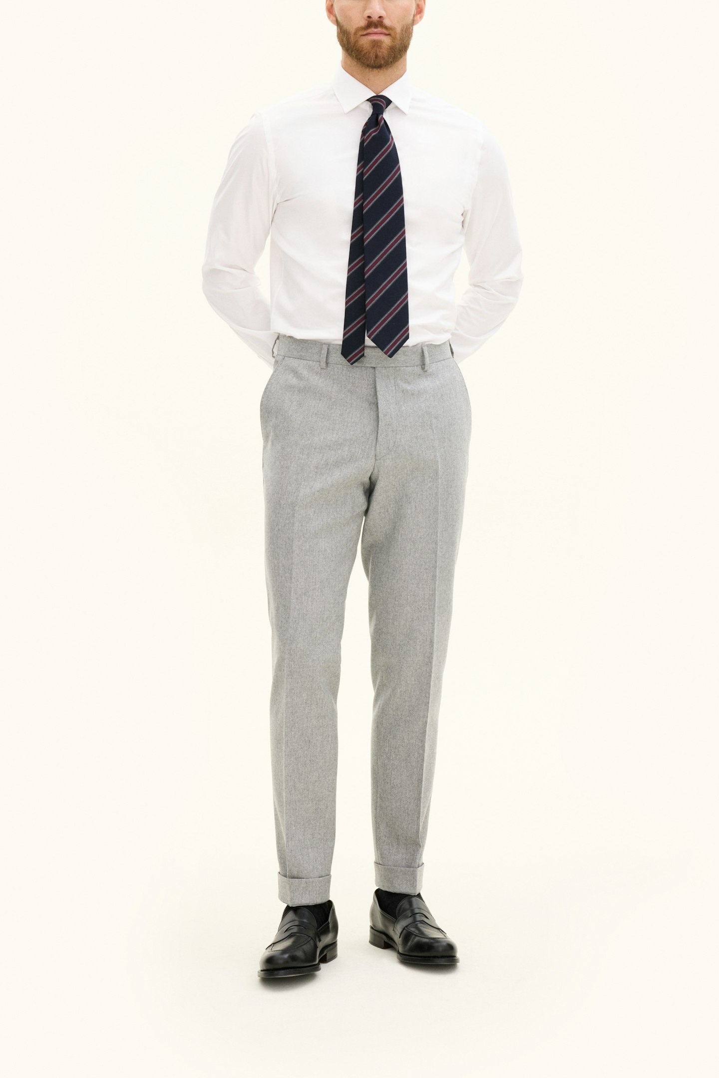 Dressbukser med smal passform, oppbrett og normalt høyt liv. Italiensk flanell av ull som gir en naturlig varme og høy pusteevne.