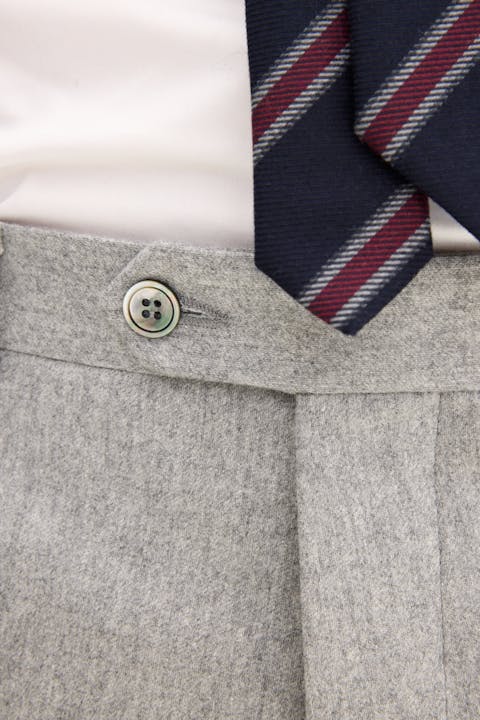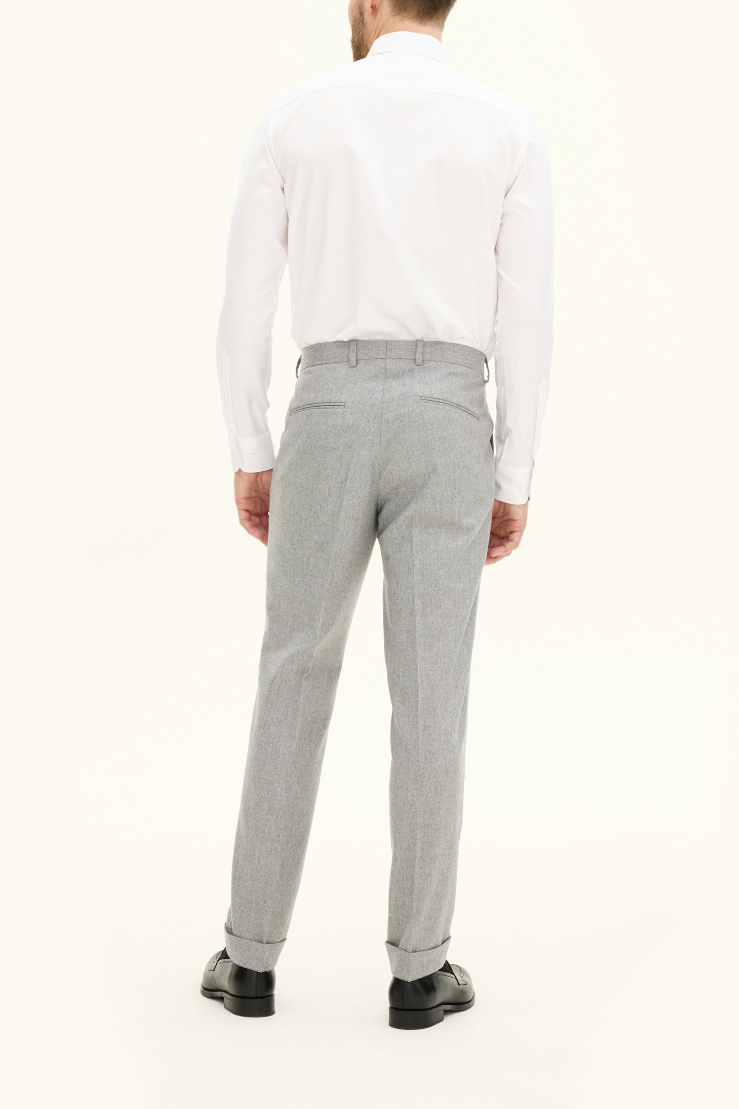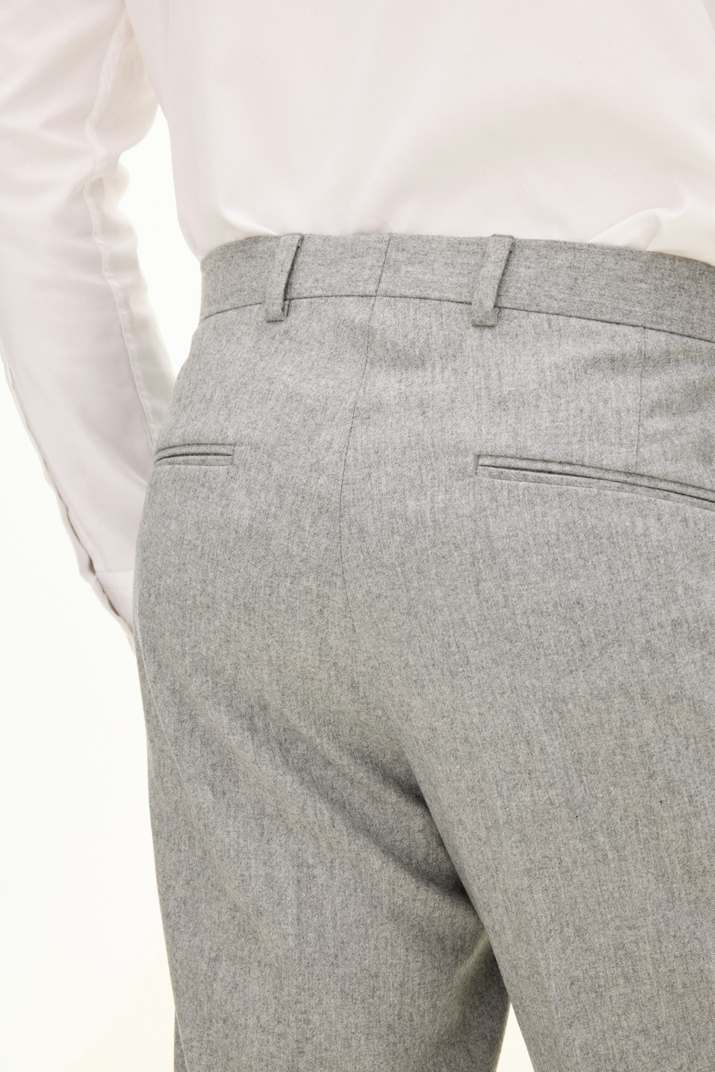 Dressbukser med smal passform, oppbrett og normalt høyt liv. Italiensk flanell av ull som gir en naturlig varme og høy pusteevne.
