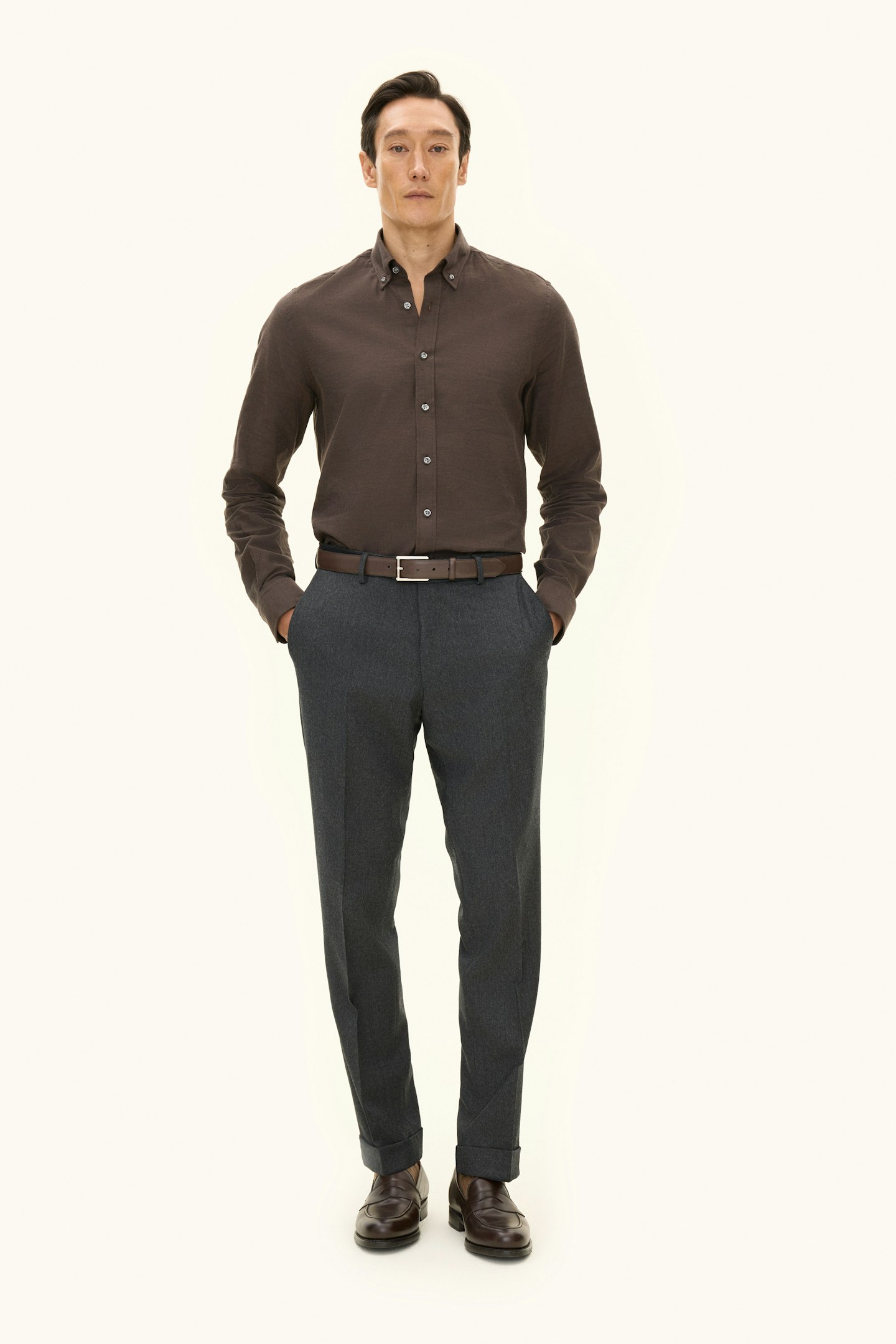 Buksene har en regular fit passform og er laget av en myk ullblanding som gir en smidig passform og en elegant følelse. Det nedtonede designet gjør dem like naturlige til hverdagsbruk som til mer formelle anledninger.