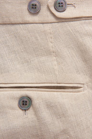 Klassiske shorts med sidespenner som justerer midjen. Laget av et tynt linstoff.