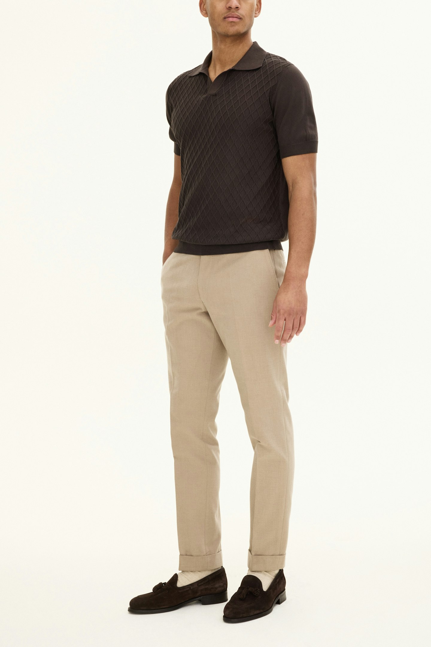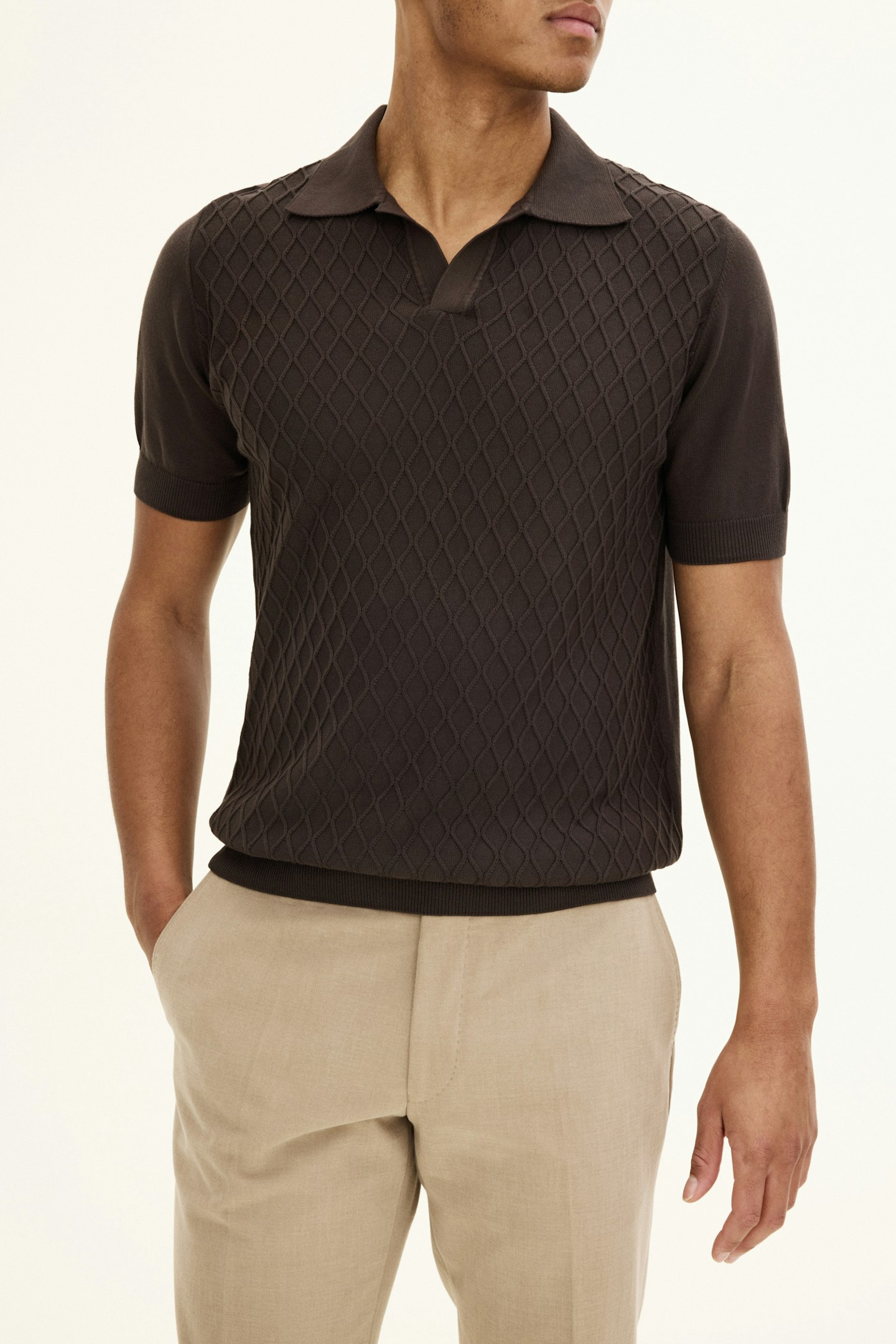 Vår poloskjorte Mirza er en slim fit, kortermet poloskjorte med en vanlig krage. Den er laget av 100% bomull og har en strikket struktur.
