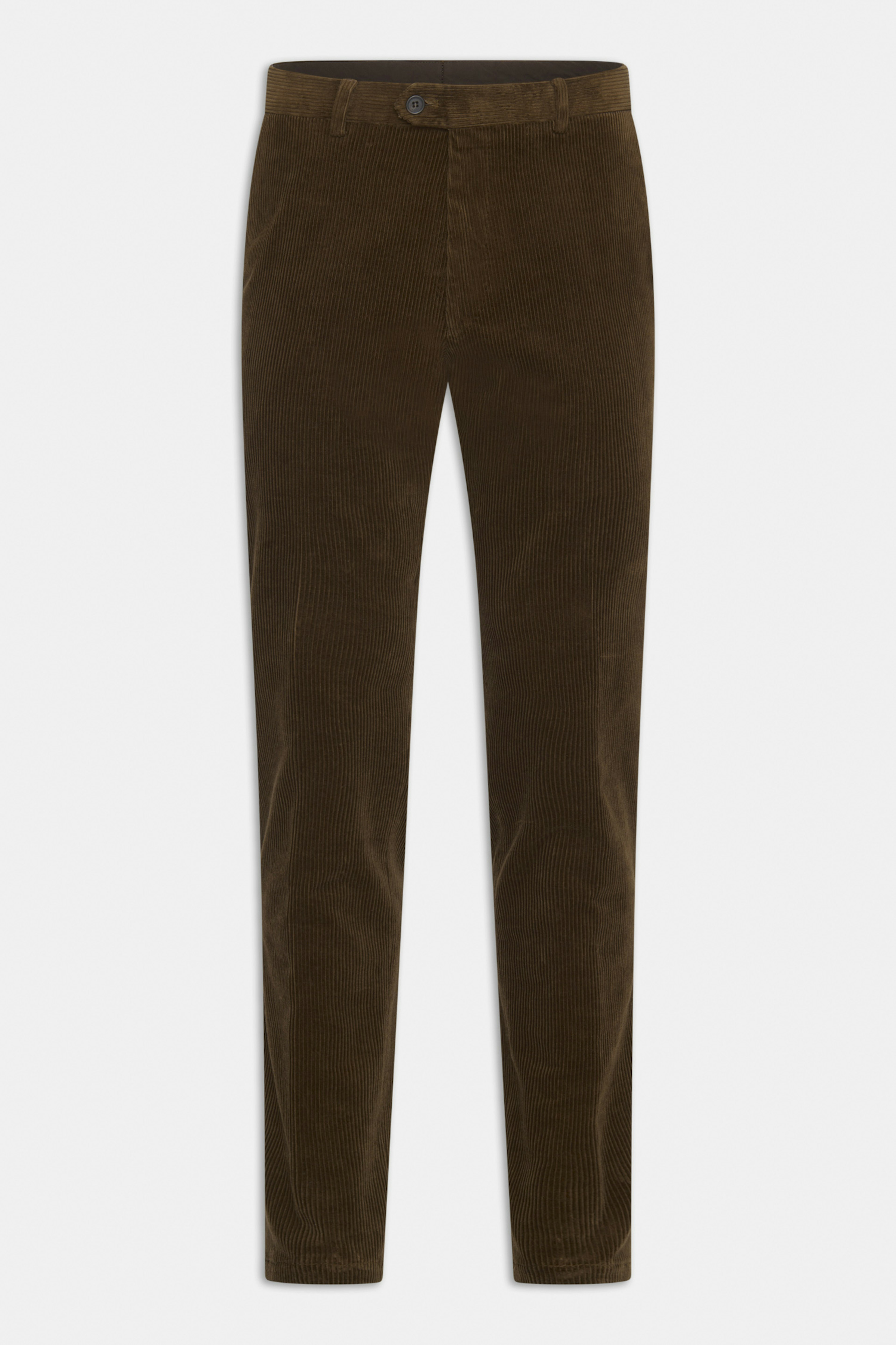 Bred kordfløyelbukse med fleksibel stretch! Denne modellen er smal i passformen og har en stilsikker, litt kortere benlengde enn de klassiske dressbuksene. Det betyr at buksebenet slutter rett over skoen uten å være nær skoen. Kan med fordel brukes sammen med en jakke i litt tykkere stoff, oxfordskjorte og brogues