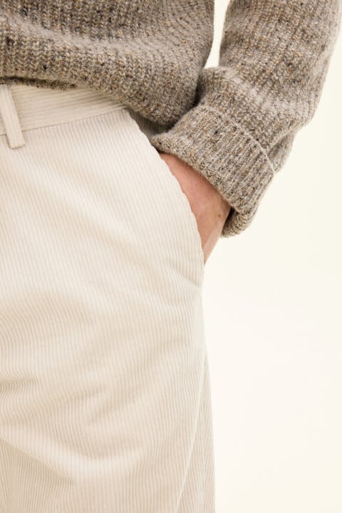 Bred kordfløyelbukse med fleksibel stretch! Denne modellen er smal i passformen og har en stilsikker, litt kortere benlengde enn de klassiske dressbuksene. Det betyr at buksebenet slutter rett over skoen uten å være nær skoen. Kan med fordel brukes sammen med en jakke i litt tykkere stoff, oxfordskjorte og brogues