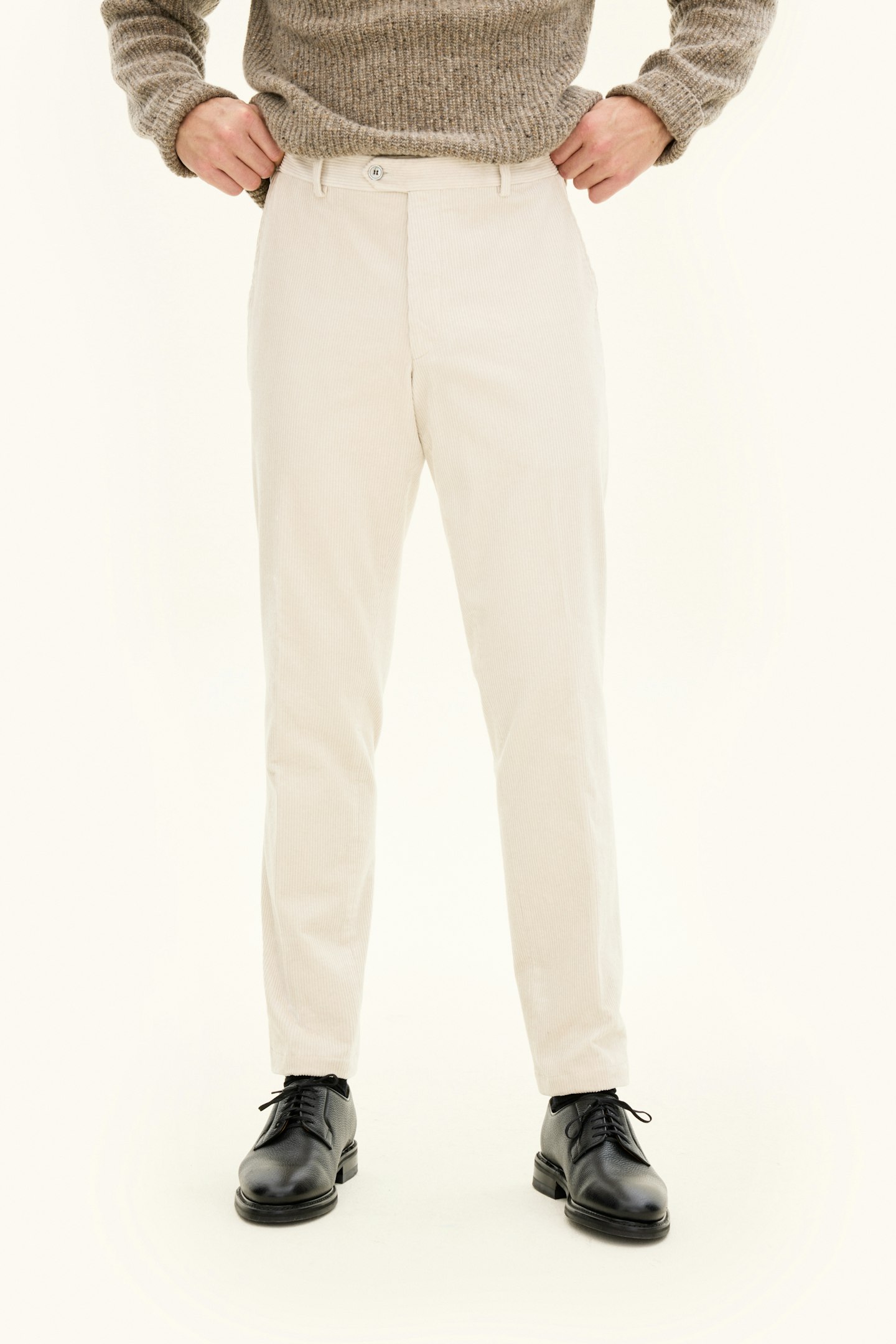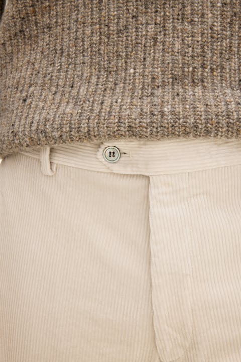 Bred kordfløyelbukse med fleksibel stretch! Denne modellen er smal i passformen og har en stilsikker, litt kortere benlengde enn de klassiske dressbuksene. Det betyr at buksebenet slutter rett over skoen uten å være nær skoen. Kan med fordel brukes sammen med en jakke i litt tykkere stoff, oxfordskjorte og brogues