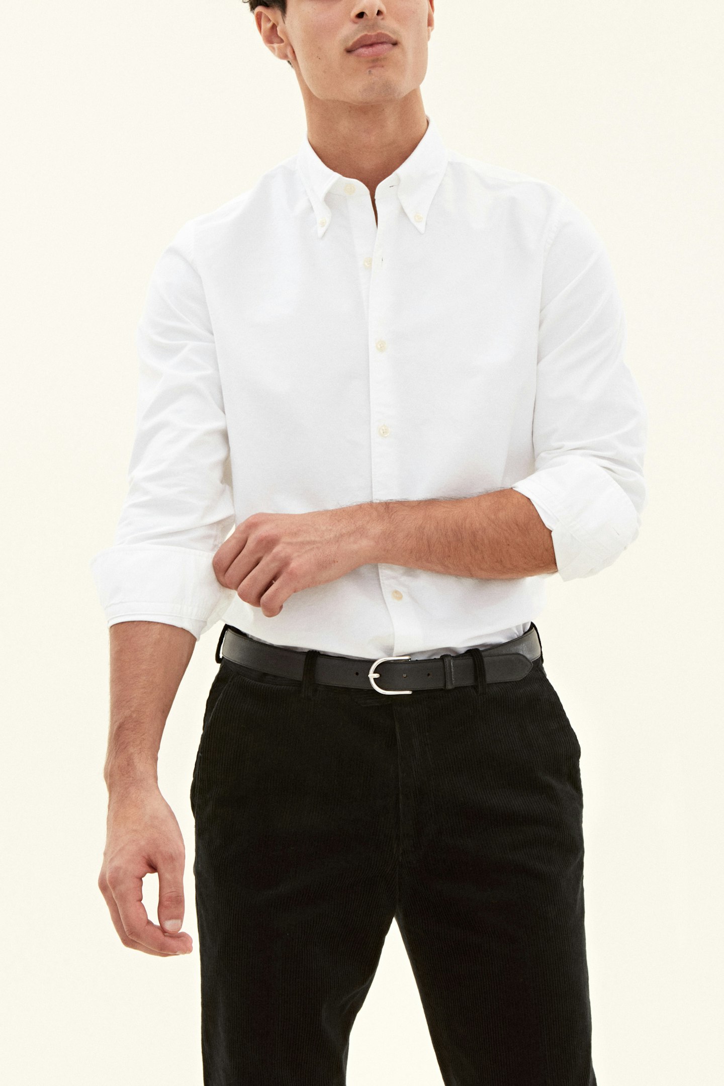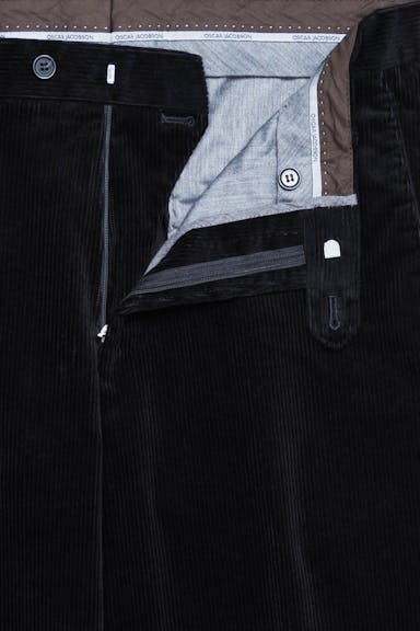 Bred kordfløyelbukse med fleksibel stretch! Denne modellen er smal i passformen og har en stilsikker, litt kortere benlengde enn de klassiske dressbuksene. Det betyr at buksebenet slutter rett over skoen uten å være nær skoen. Kan med fordel brukes sammen med en jakke i litt tykkere stoff, oxfordskjorte og brogues