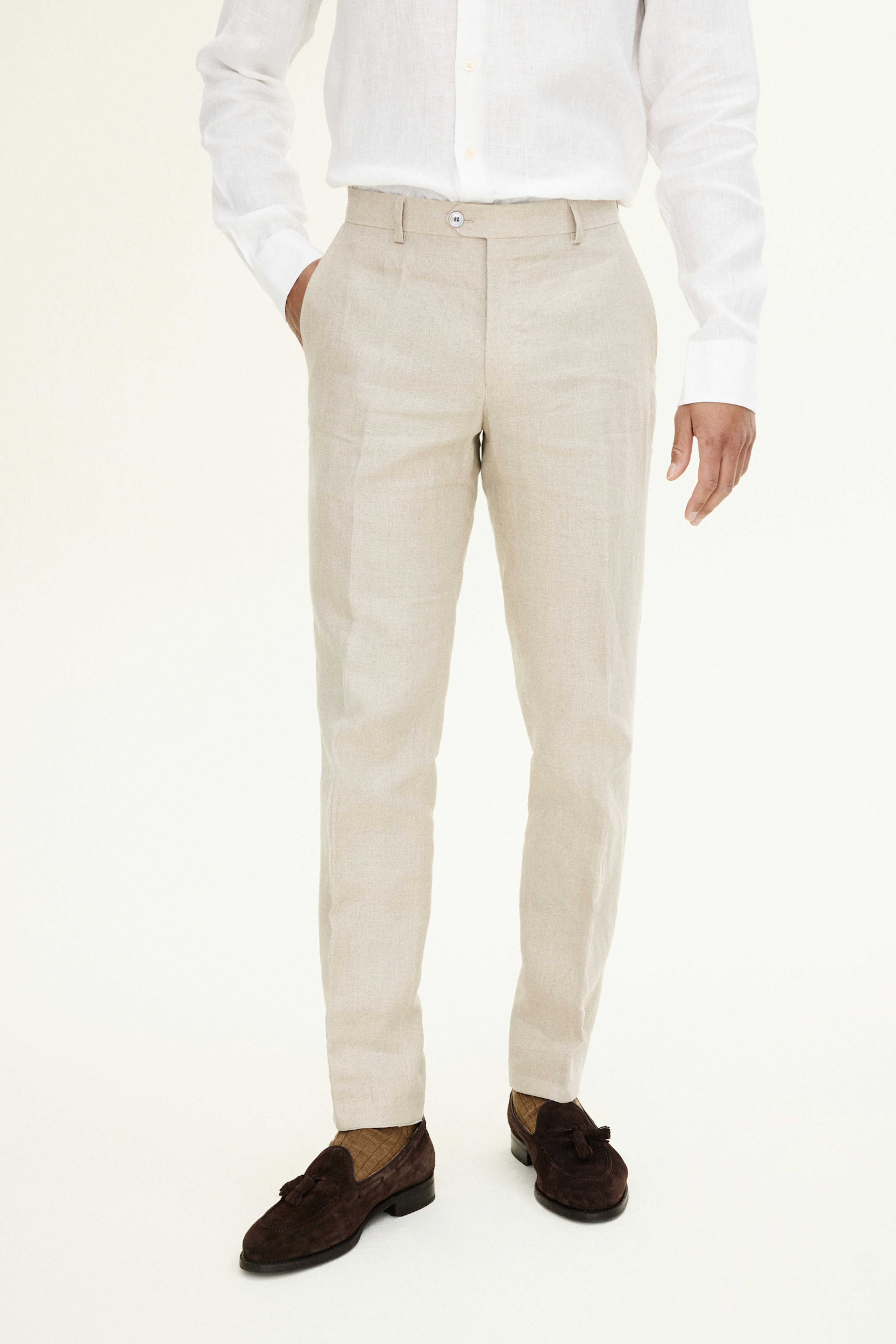 Bukse med en smal passform og normalhøy midje, beltehemper og avsmalnende ben. Laget av et tynt linstoff.