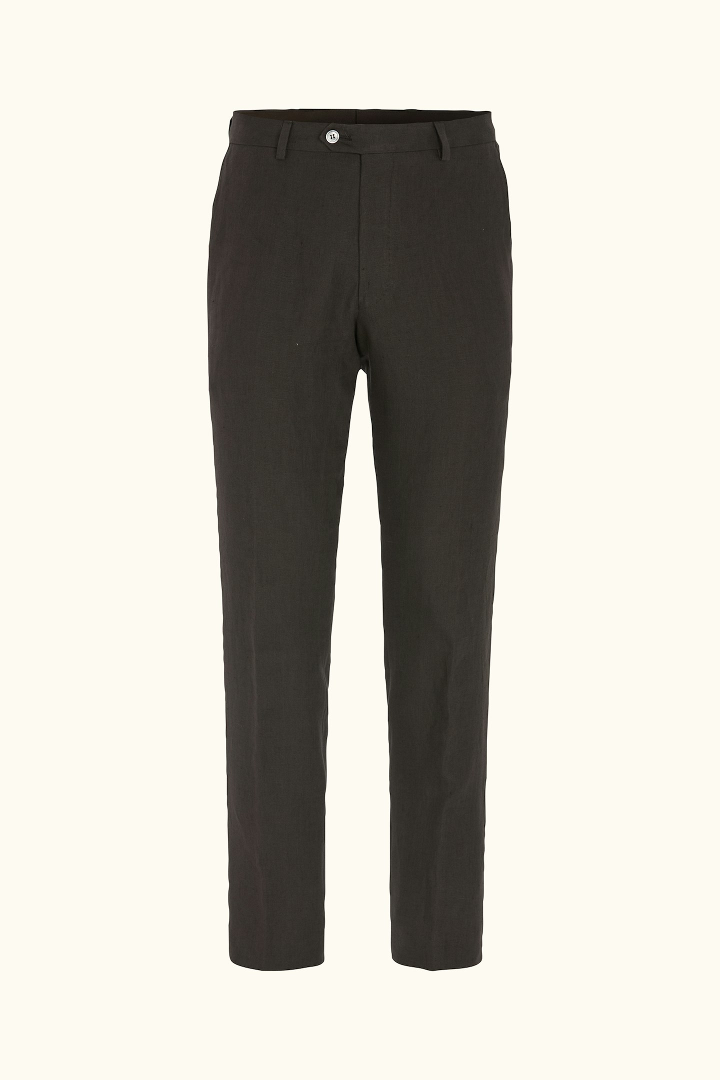Bukse med en smal passform og normalhøy midje, beltehemper og avsmalnende ben. Laget av et tynt linstoff.