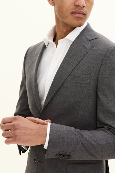 En klassisk blazer i romslig passform som passer både til kontoret og på festen. Denne modellen har mykt formede skuldre, helfôret innside av viskose, og stilsikre lommeklaffer. Stoffet er en slitesterk ullstretch som egner seg godt til daglig bruk. Match med alt fra en skjorte og slips, til en piké eller poloskjorte!