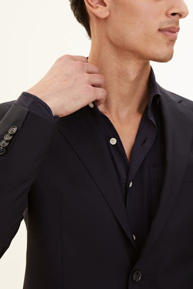 Vår smale og formelle blazer i italiensk super 120’s ull. Finnes nå i flere alternativer. En del av Oscar Jacobsons signaturkolleksjon.