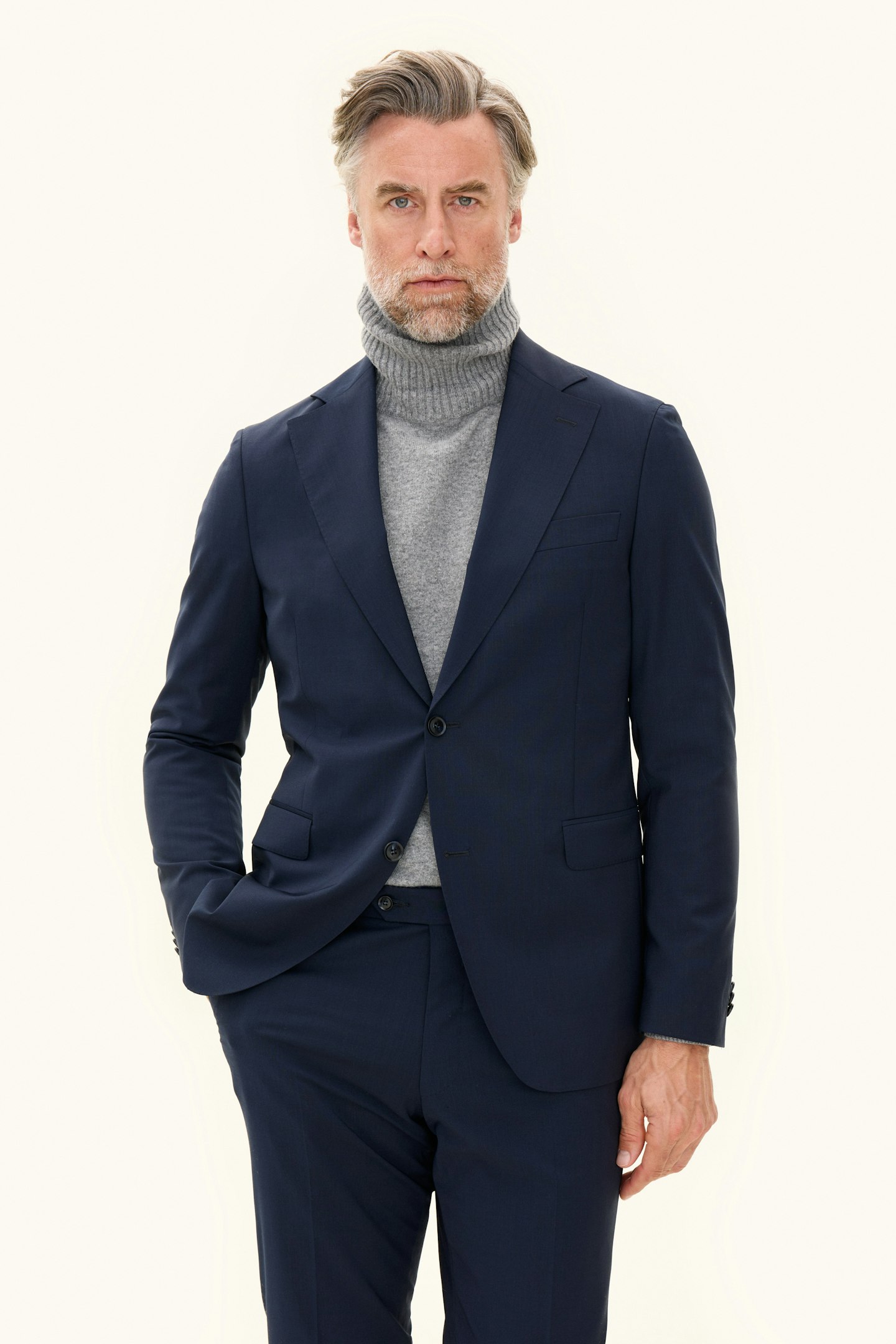 Klassisk blazer med en smal passform som passer like godt til bryllup og konfirmasjonsfeiringer som til kontoret. Stoffet er en glatt og slitesterk ullstretch som egner seg godt til hverdagen.
