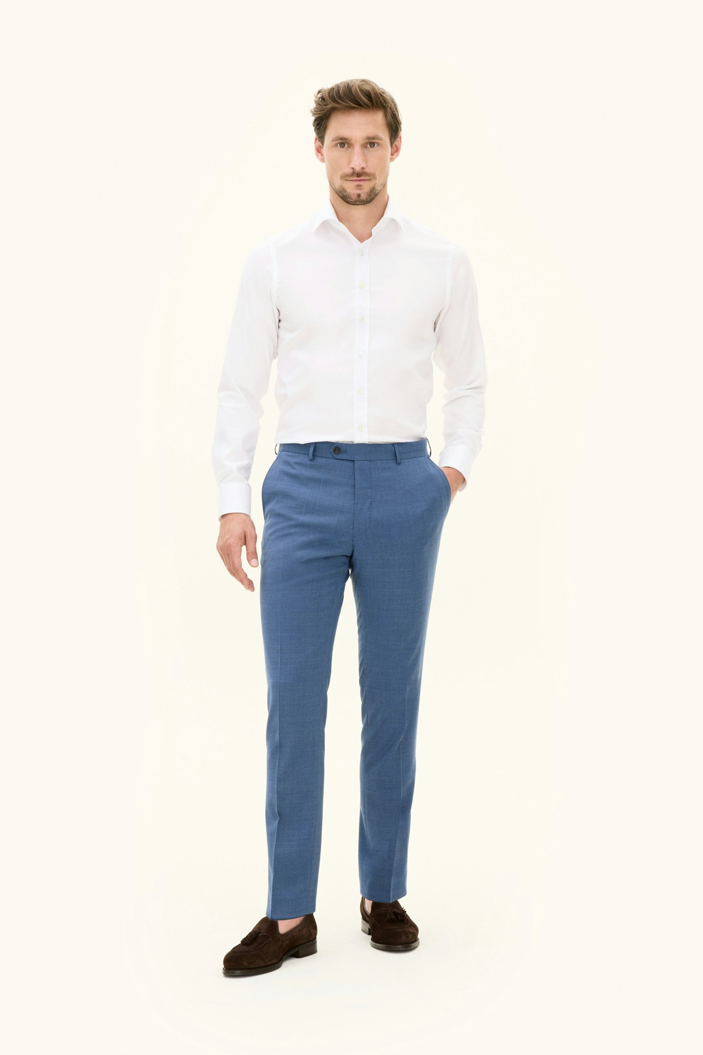 Våre bukser Denz er et slim fit alternativ for et elegant og stilig utseende. Laget av en blanding av ull og polyester, er disse buksene perfekte for enhver anledning.
