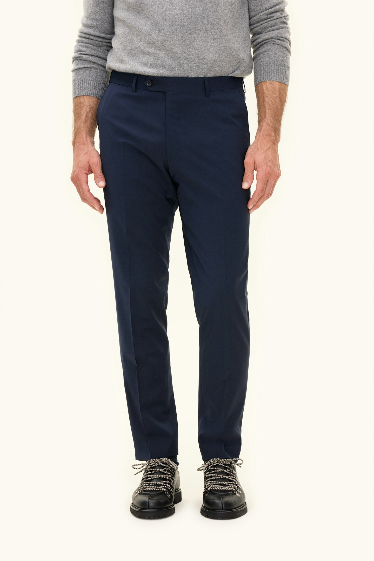 Klassisk dressbukse i slitesterk ullblanding. Denne modellen har en smal passform og en klassisk bukselengde som så vidt når skoen og har et elegant fall. Bruk den som en elegant bukse eller som en del av en hel dress!