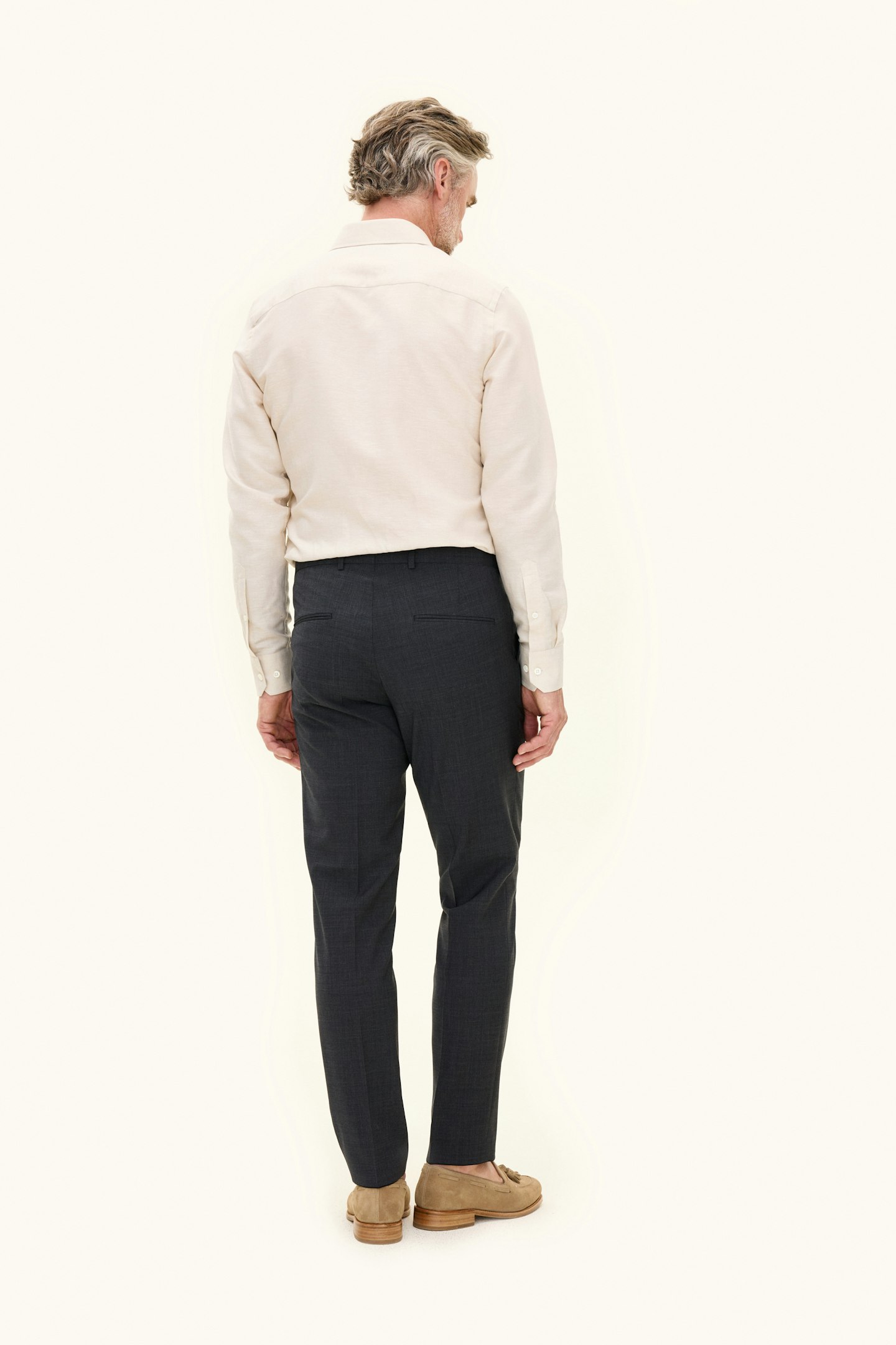 Klassisk dressbukse i slitesterk ullblanding. Denne modellen har en smal passform og en klassisk bukselengde som så vidt når skoen og har et elegant fall. Bruk den som en elegant bukse eller som en del av en hel dress!