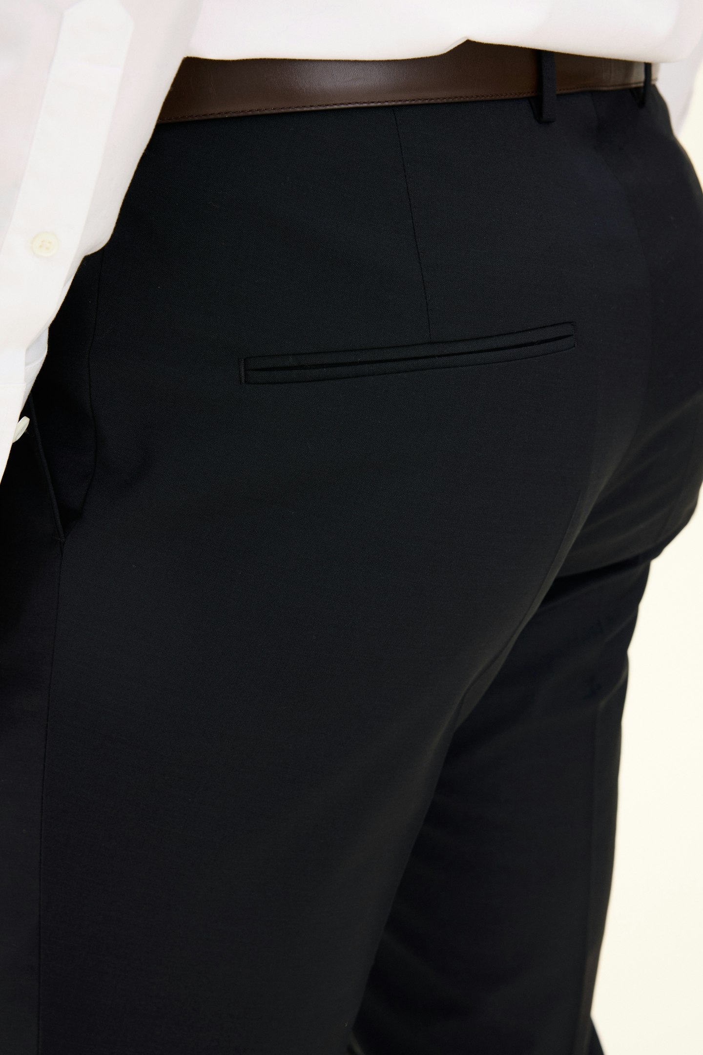 Klassisk dressbukse i slitesterk ullblanding. Denne modellen har en smal passform og en klassisk bukselengde som så vidt når skoen og har et elegant fall. Bruk den som en elegant bukse eller som en del av en hel dress!