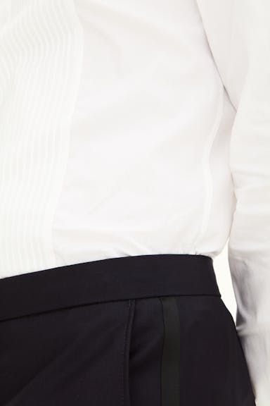 Klassiske smokingbukser med silkestriper. Denne modellen er laget av 100 % ull og har en smal passform. Utstyrt med knapper på innsiden av midjen for å feste bukseseler.