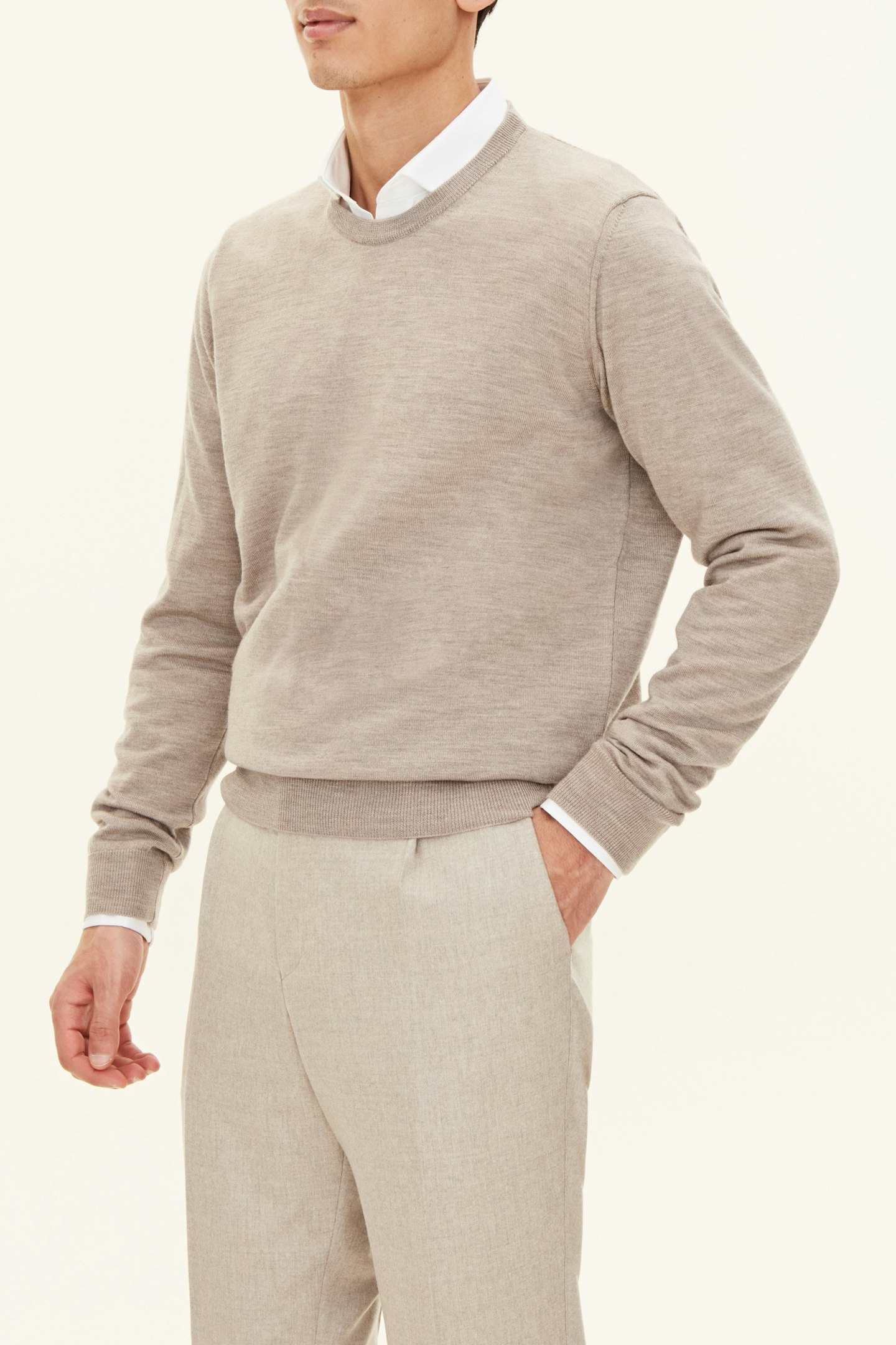 Introduserer vår Carston Rundhals, en slim fit rundhalsgenser laget av 100% ull. Den strikkede delen er perfekt for et behagelig og stilig utseende. Det enkle designet legger til en touch av enkelhet til antrekket ditt.