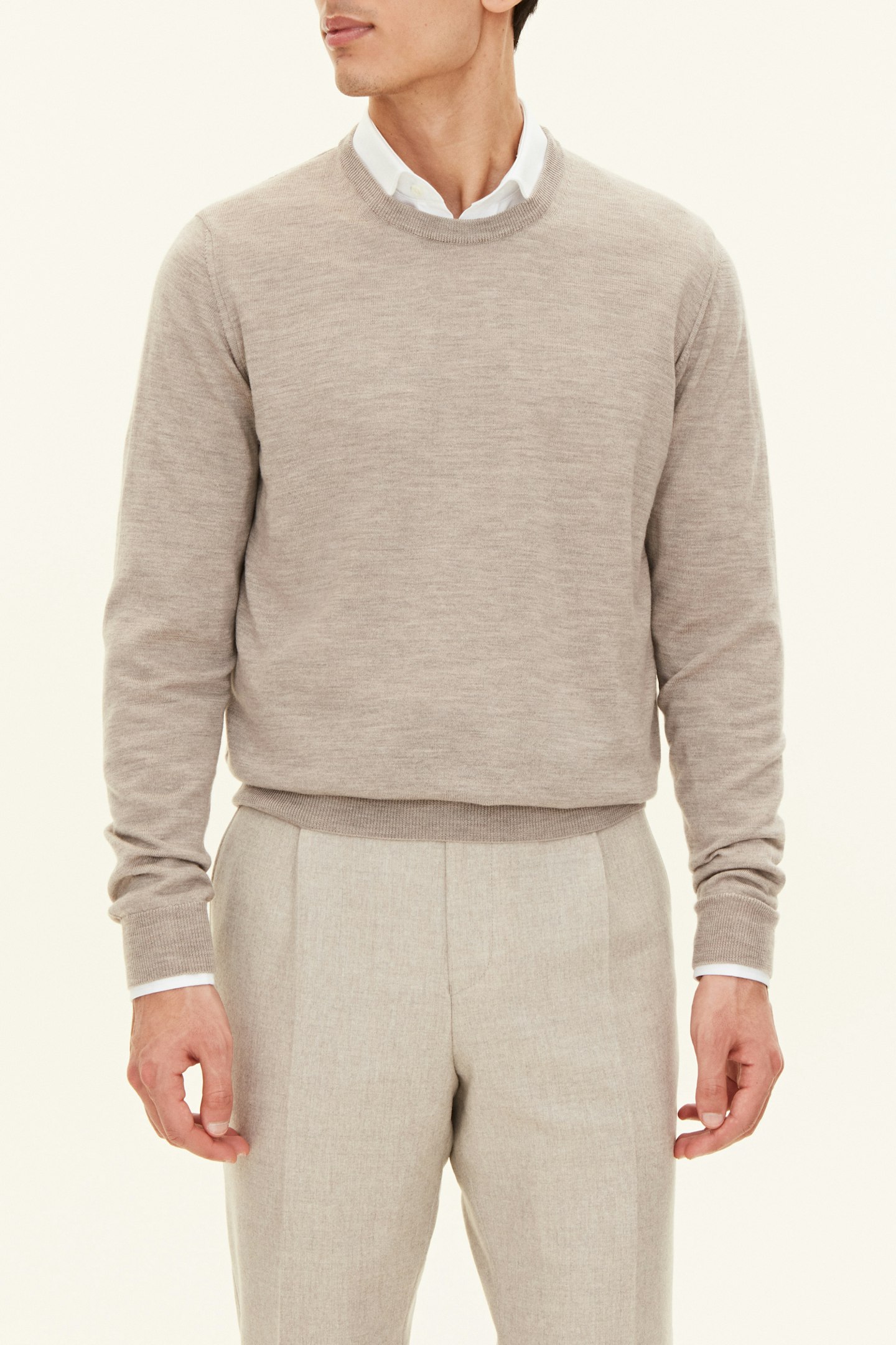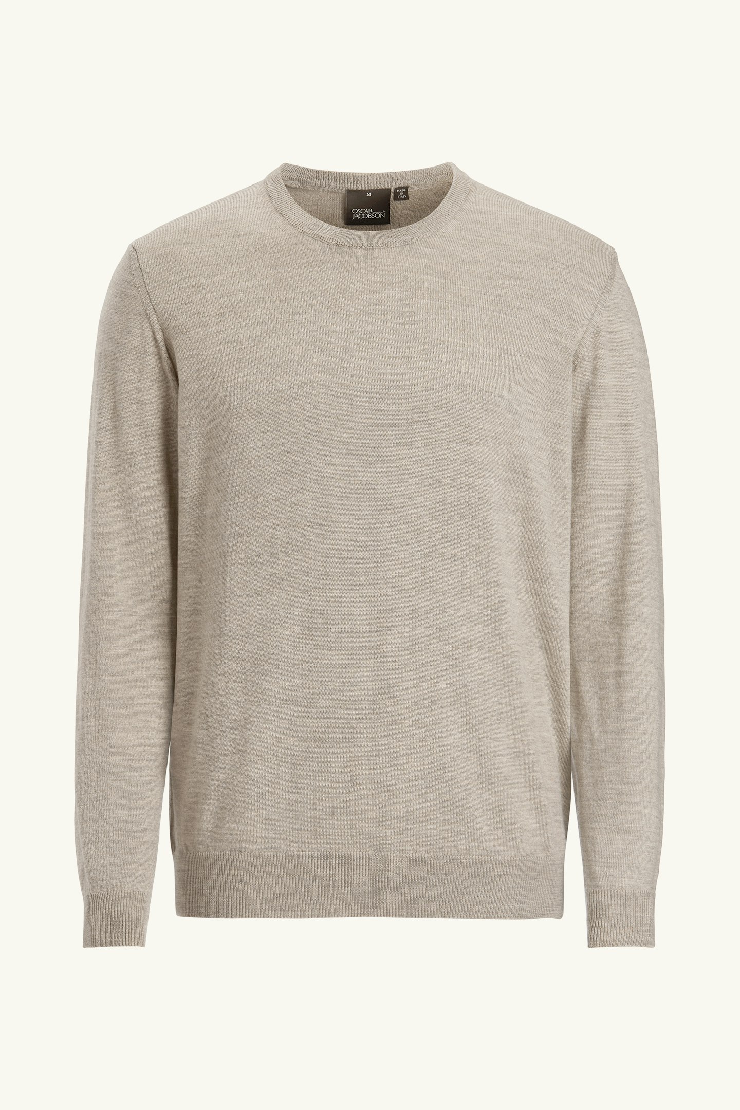 Introduserer vår Carston Rundhals, en slim fit rundhalsgenser laget av 100% ull. Den strikkede delen er perfekt for et behagelig og stilig utseende. Det enkle designet legger til en touch av enkelhet til antrekket ditt.