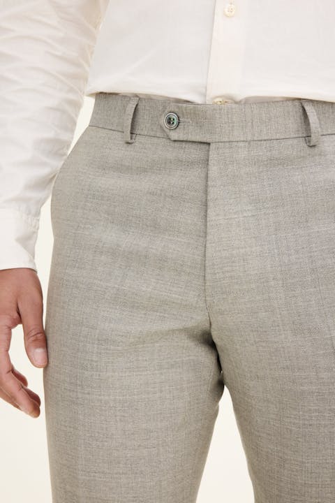 Disse buksene er laget av en tropiskvevd ull med elegant mikrostruktur. Modellen har en smal passform og en benlengde som er noe kortere enn den klassiske dressbuksens. En utmerket dressbukse til både skjorte og poloskjorte!
