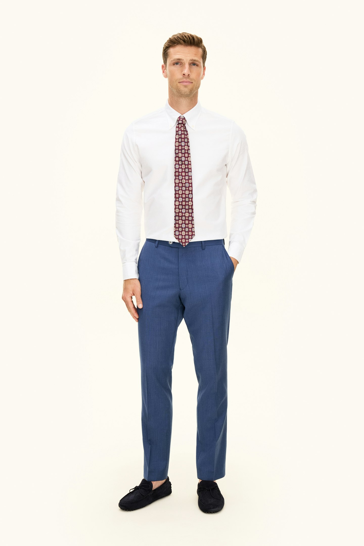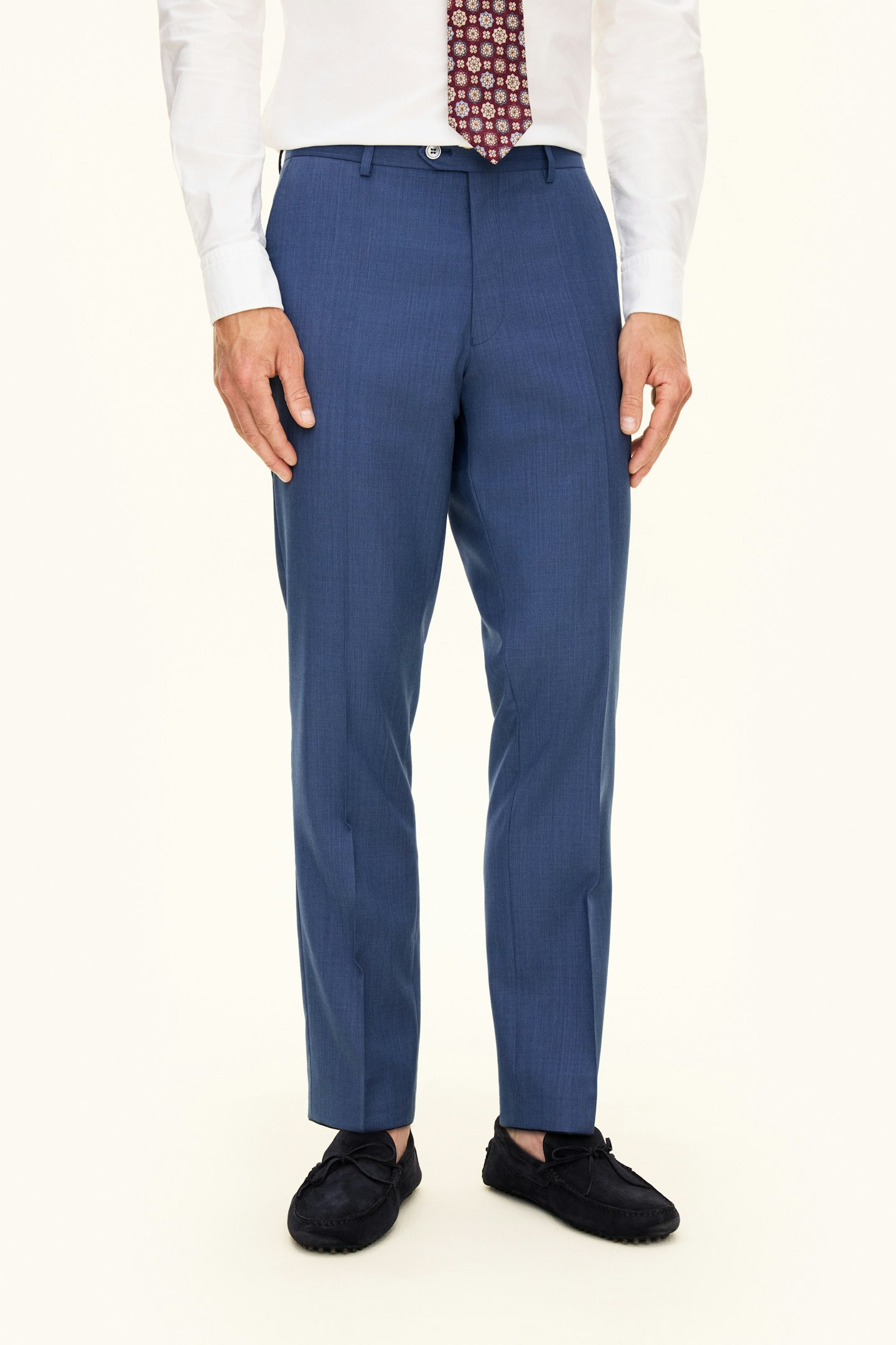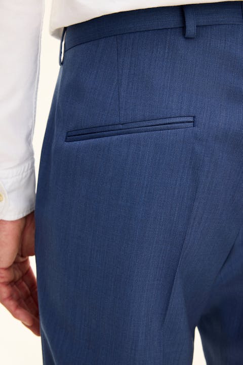 Bukser i 100 % ull med en subtil twill-struktur og en slim fit silhuett. Den normale midjen gir en balansert passform, mens stoffstrukturen gir dybde til det elegante designet. En moderne stil som passer like godt til en jakke som til en mer avslappet topp.