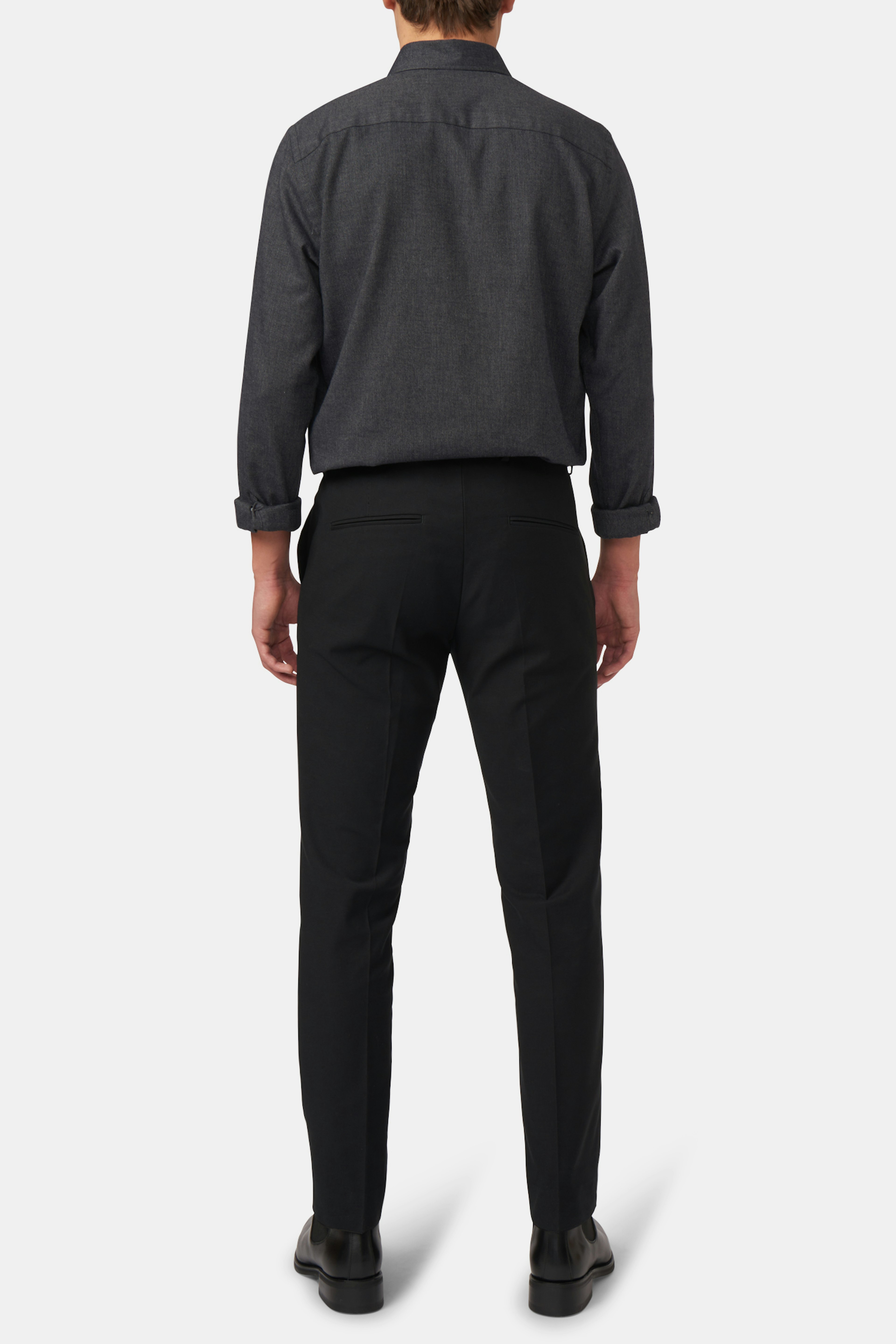 Bukse med en smal passform og normalhøy midje, beltehemper og avsmalnende ben. Laget av en bomullstretch for ekstra komfort.