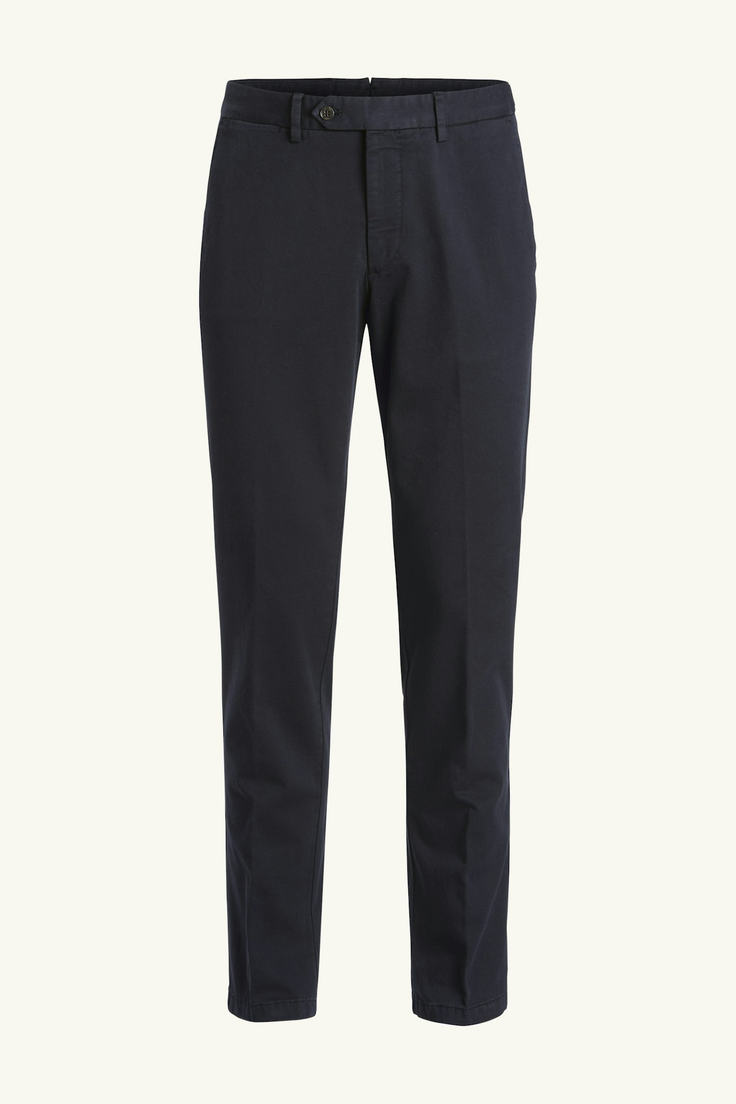 En oppdatert versjon av de klassiske chinos-buksene. Denne modellen er slim fit, har normalt høyt liv og en benlengde der buksene slutter rett over skoen og har et naturlig fall. Livet er utstyrt med sidejusteringer – en stilig detalj som også kan brukes til å gjøre midjemålet på buksen noen cm mindre.
