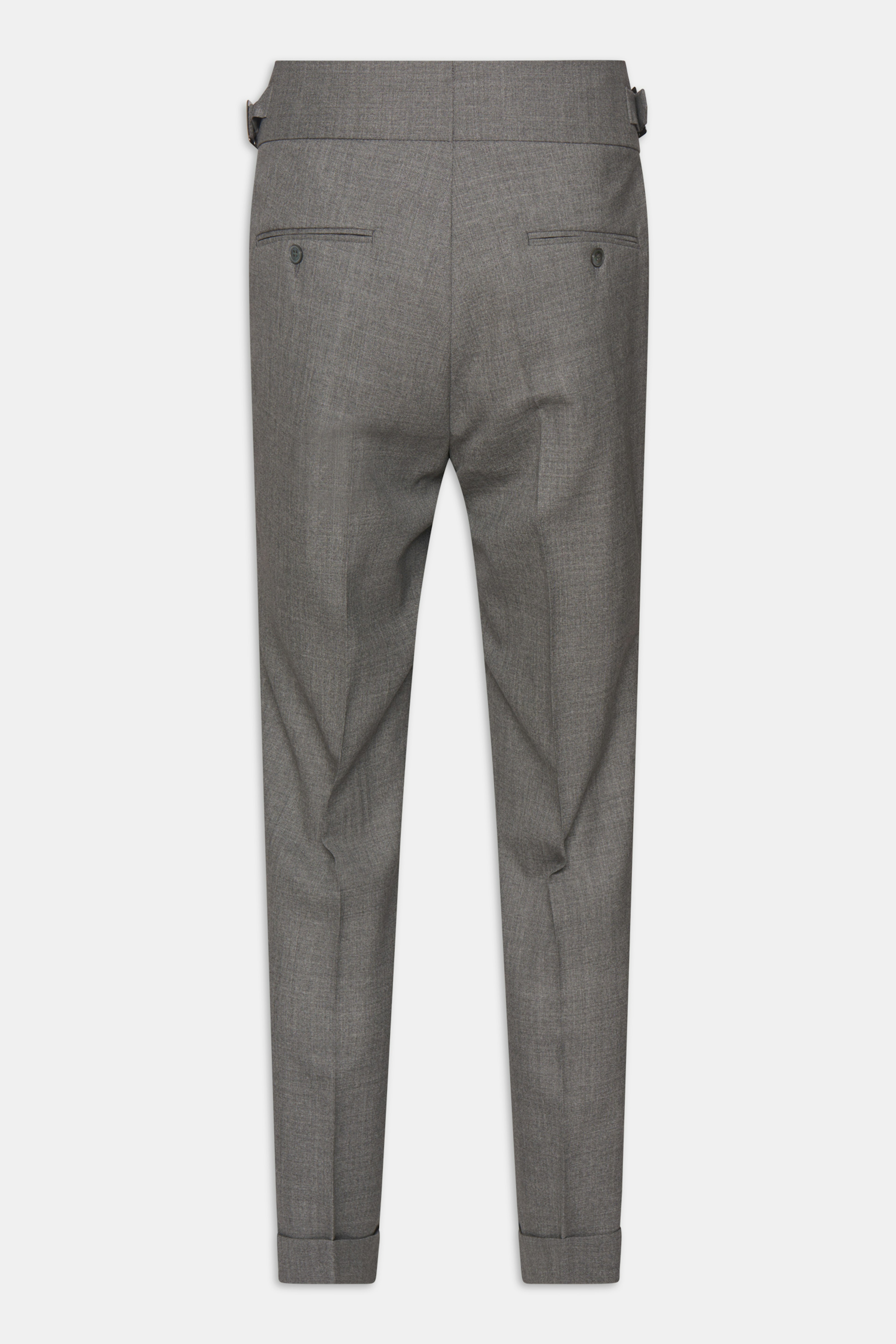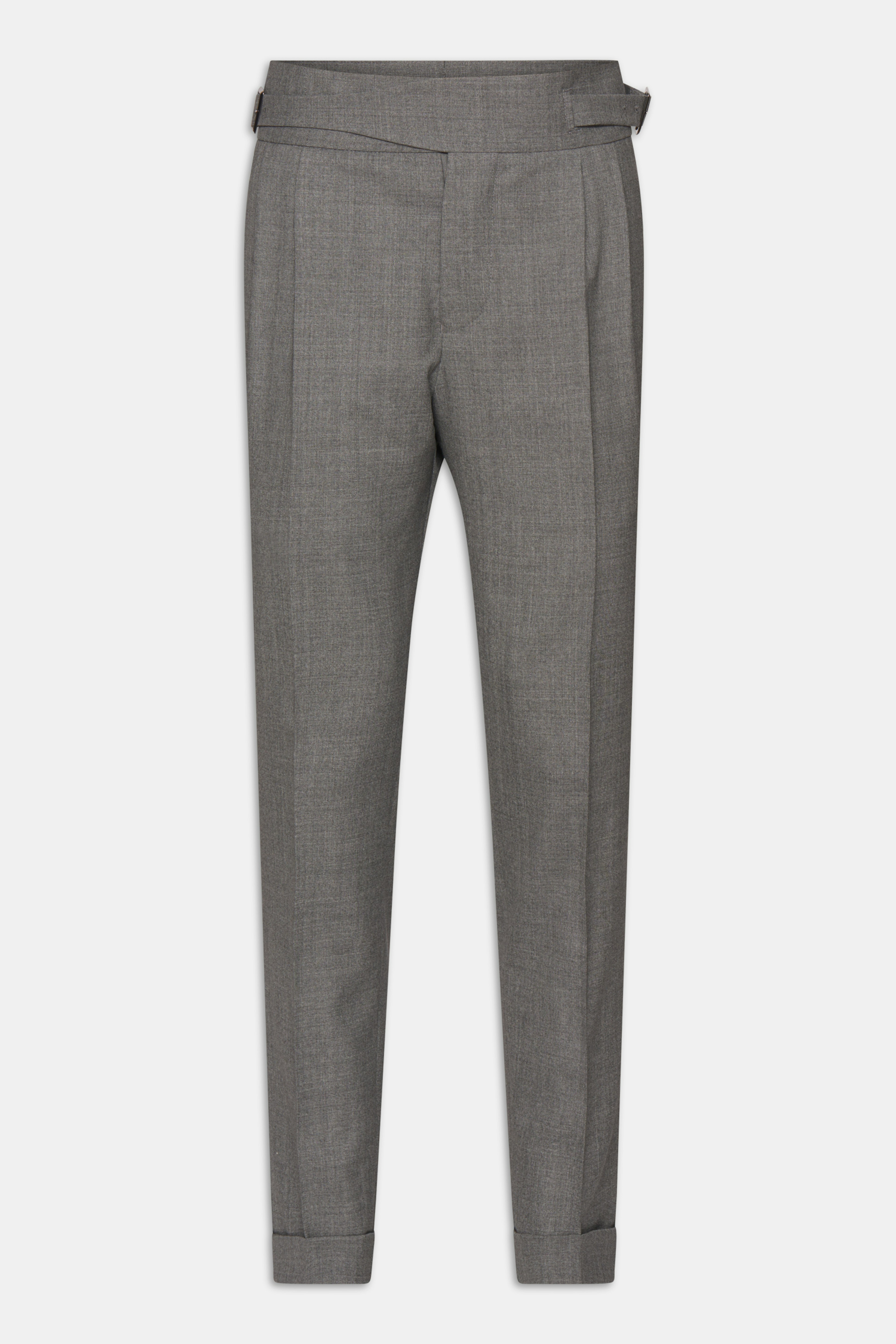 Gurkha-bukser i 100% ull fra italienske veveriet Vitale Barberis Canonico. En lett ullkvalitet som passer bra i sommerhalvåret. Stilig og veldig behagelig spenne i midjen, baklommer lukkes med ekte perlemorknapper. Dobbel legg som gir bredde i låret og en avsmalnende passform med oppbrett nederst.