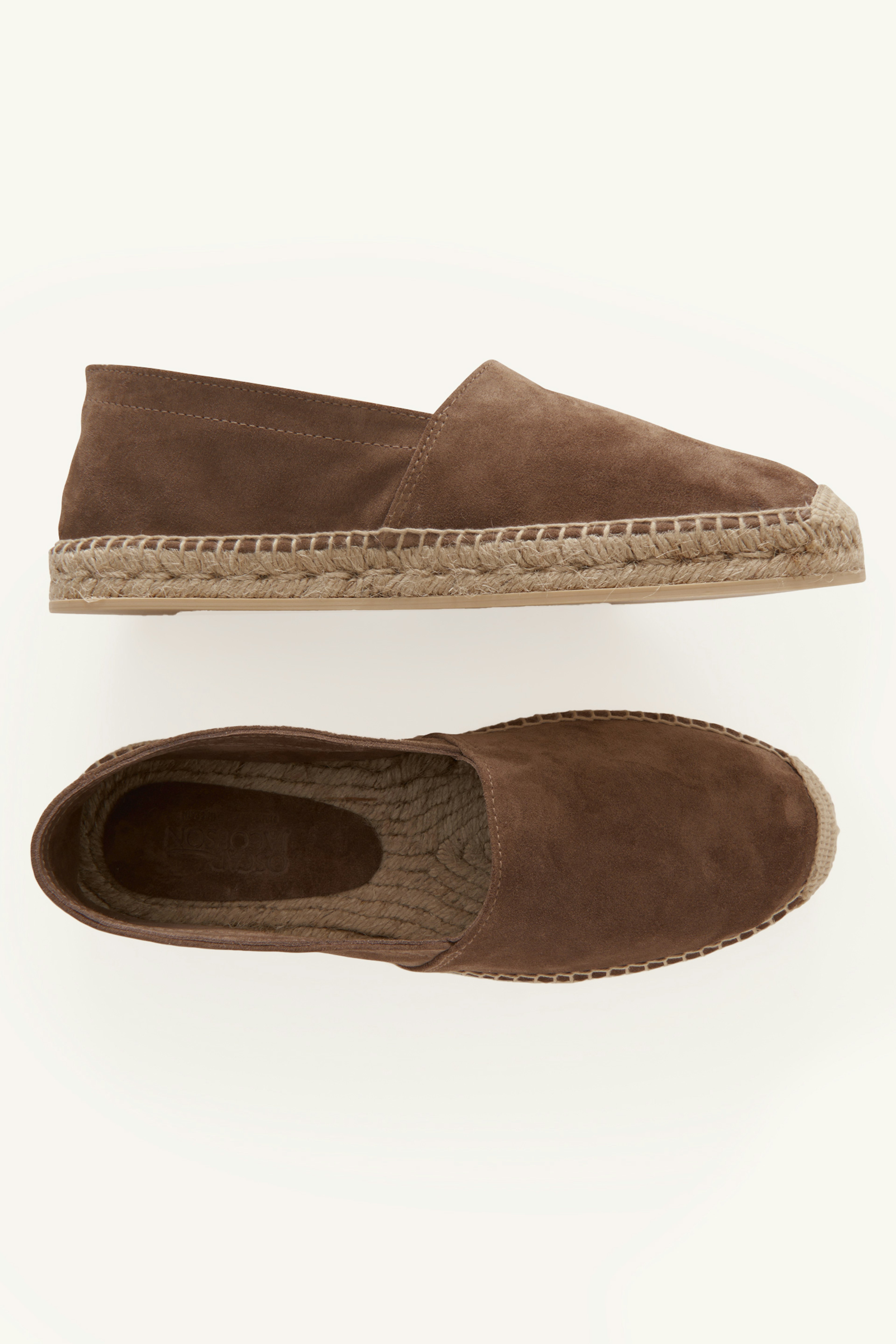 Classic espadrilles in an Italian fine grain suede with a braided jute sole. Unlined and unconstructed for a relaxed and summery look. Outersole in rubber for a longer durability.