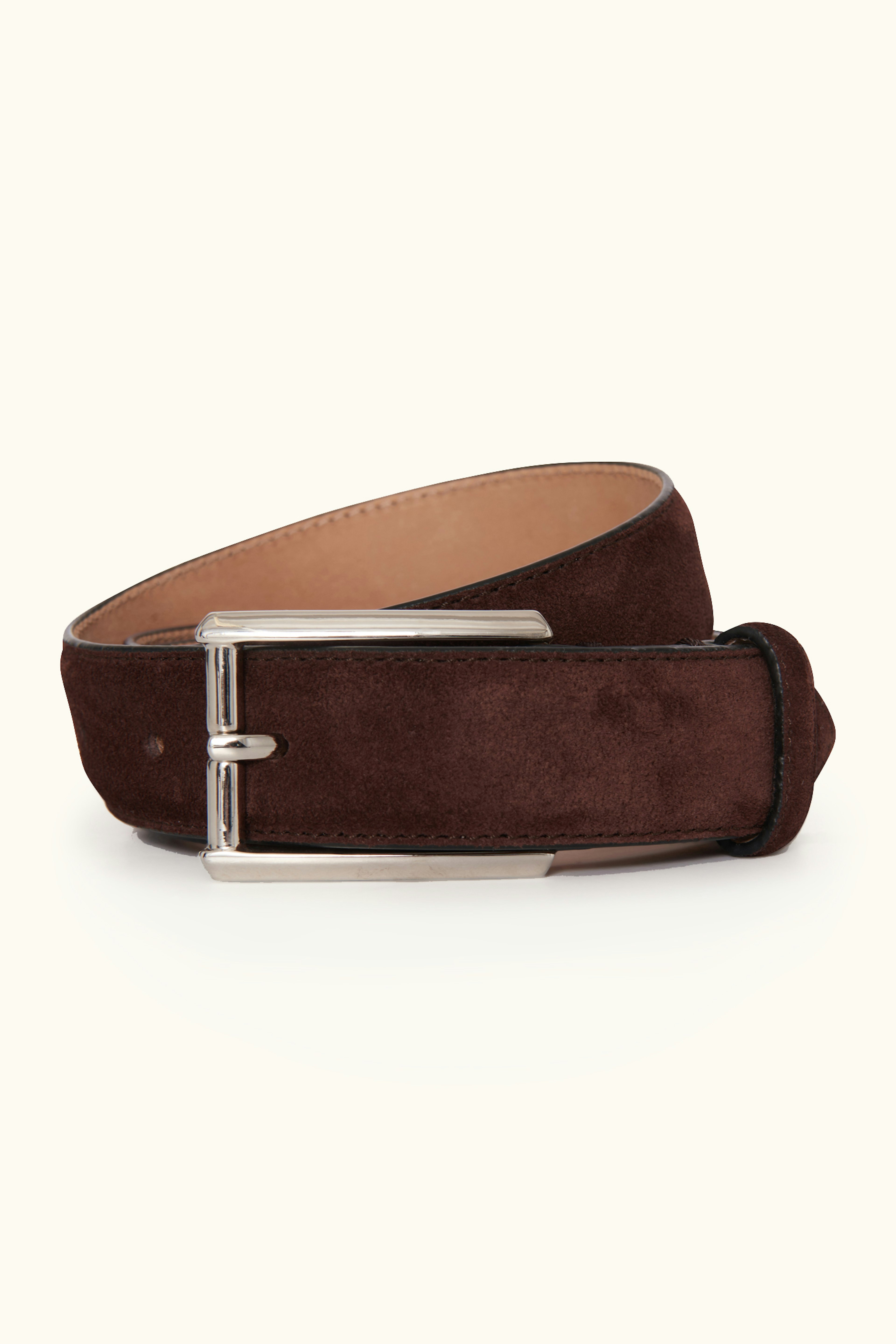 Nubuckfôret belte i italiensk finfibret semsket skinn, med en sølvfarget spenne. Håndlaget i Spania. Beltet er 30 mm bredt, og fungerer både til en formell dress og et par avslappende jeans.