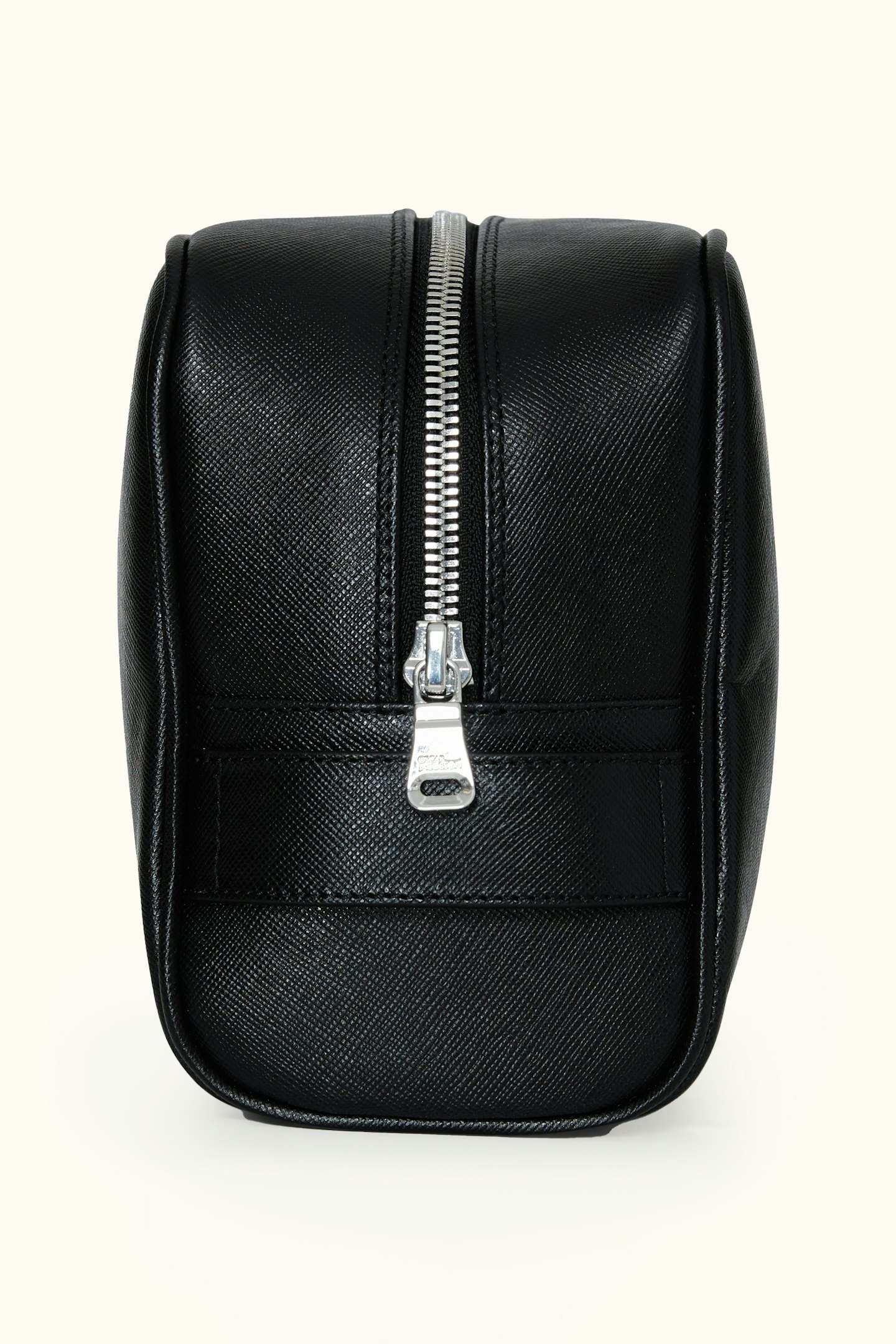 Håndlaget toalettmappe i Saffiano-lær, laget i Almansa-regionen i Spania hvor de har en lang tradisjon med lærhåndverk. Toalettmappen har en innerlomme med glidelås og et håndtak på utsiden for å feste den til våre større vesker. Mål: 25x14x9 cm