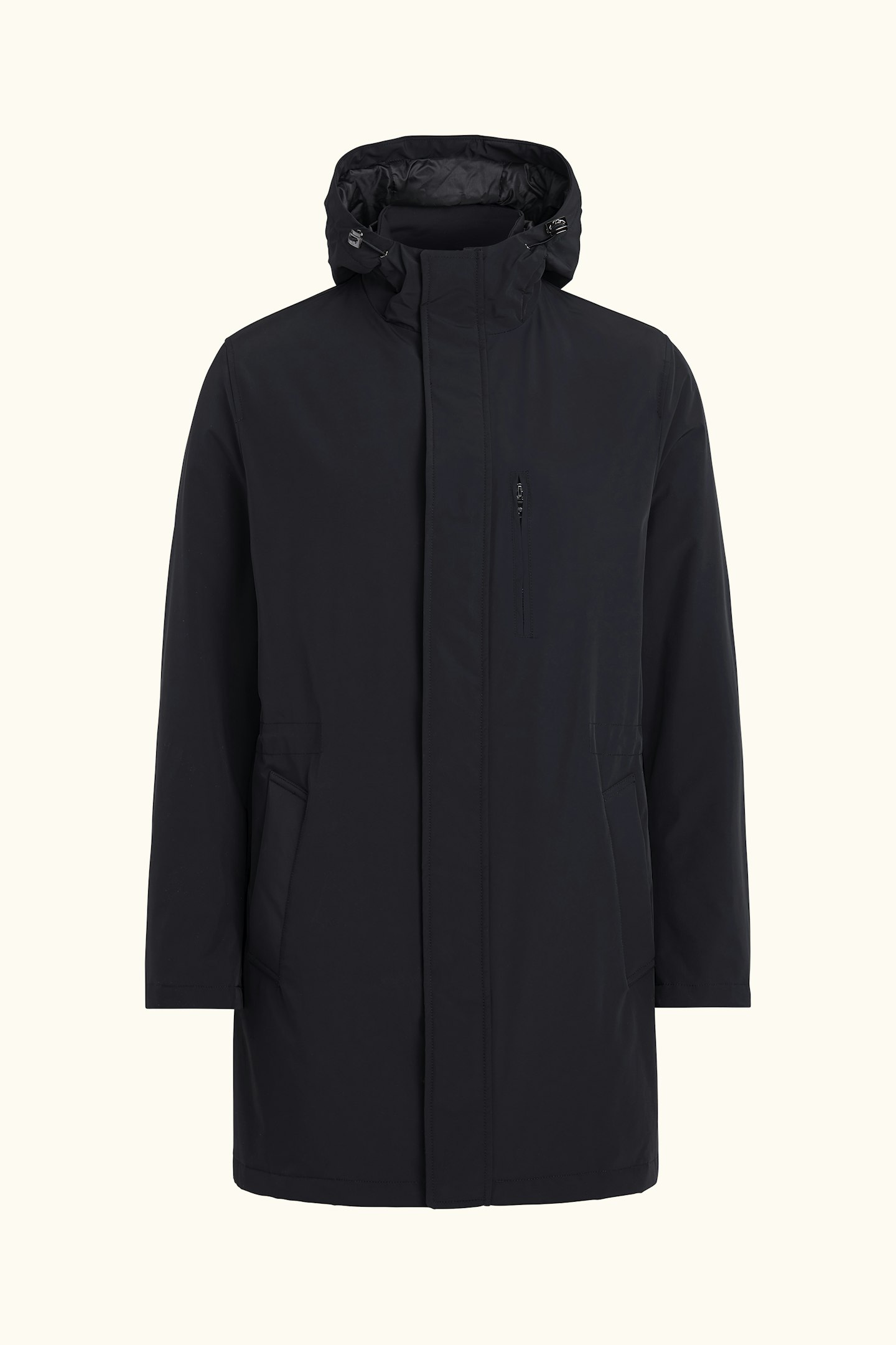 En teknisk, polstret nylonjakke med regular fit. Den funksjonelle konstruksjonen gir beskyttelse og komfort i kjølig vær, mens det rene designet skaper et moderne og stilig utseende.