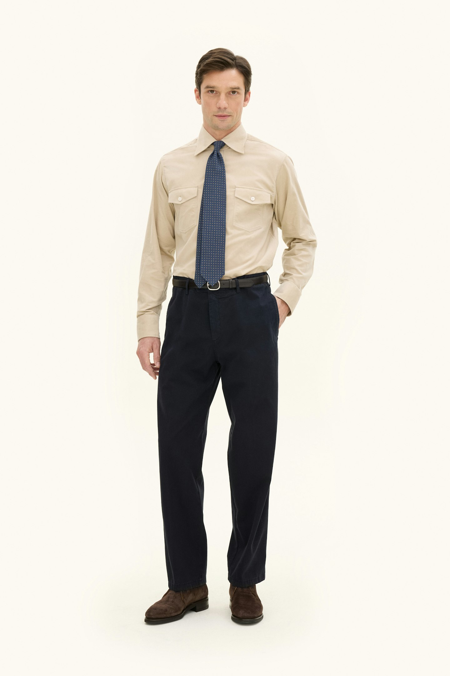 Disse buksene har en regular fit. De er designet med et tidløst ensfarget mønster, laget med vevd konstruksjon og har en raffinert twill-stretchtekstur. Laget av en myk bomullsblanding og designet for å komplementere enhver garderobe med sin tidløse eleganse.