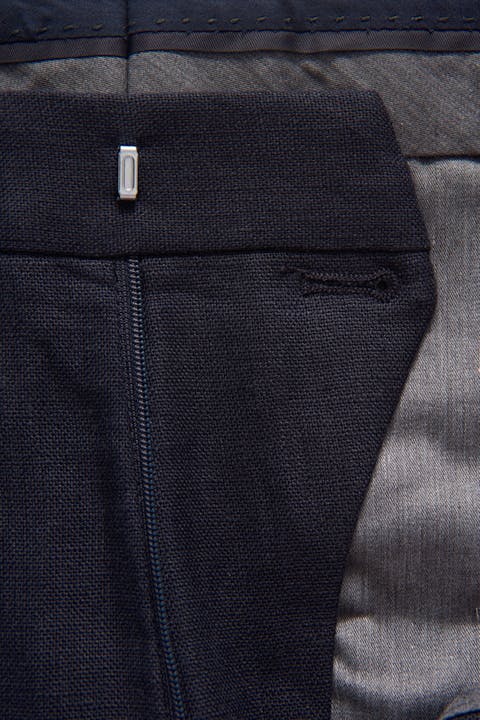 Bukse med en helt rett passform og høyt liv, doble legg og beltehemper. Laget av et fint og luftig linstoff.