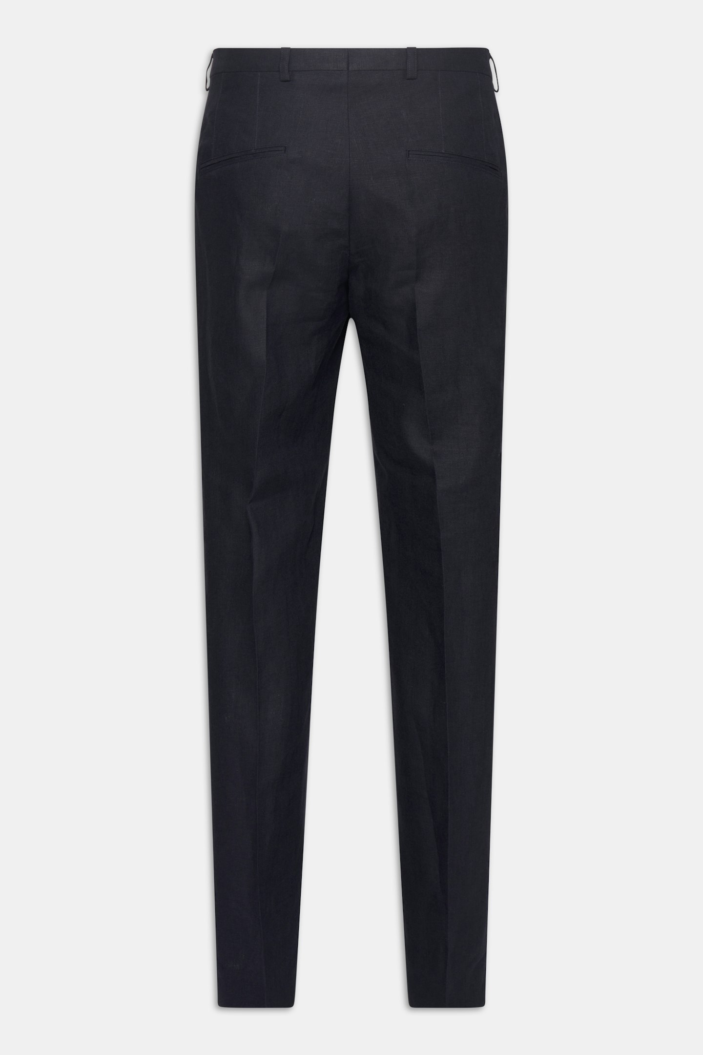 Bukse med en helt rett passform og høyt liv, doble legg og beltehemper. Laget av et fint og luftig linstoff.